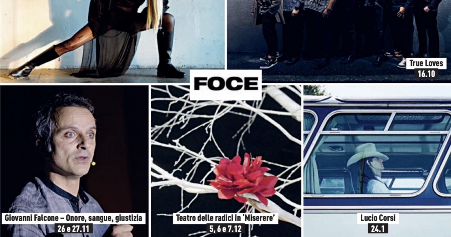 Per tutto il resto in ambito teatrale – da ‘Lo Spirito di Locarno’ del locarnese Teatro Paravento (14 e 15.10) al “dramma della vita” di ‘Comedian’ del Club74 (18.11), dal toccante ‘È giusto così’ di Roberto Albin (19.11) al ‘Giovanni Falcone – Onore, sangue, giustizia’ del Teatro dell’Imprevisto (26 e 27.11), dai Gordi/Teatro Franco Parenti di ‘Note a margine’ (11 e 12.12) fino a ‘Rette parallele sono l’amore e la morte’ di e con Oscar De Summa (31.1) – si rimanda a www.foce.ch. Vale anche per gli spettacoli del Fim – Festival internazionale delle marionette (18.10 - 9.11), per la sezione Cinema, che insieme alle pellicole abbraccia anche i Lugano Animation Days. Vale per gli incontri culturali, il ballo e la danza contemporanea. B.D.