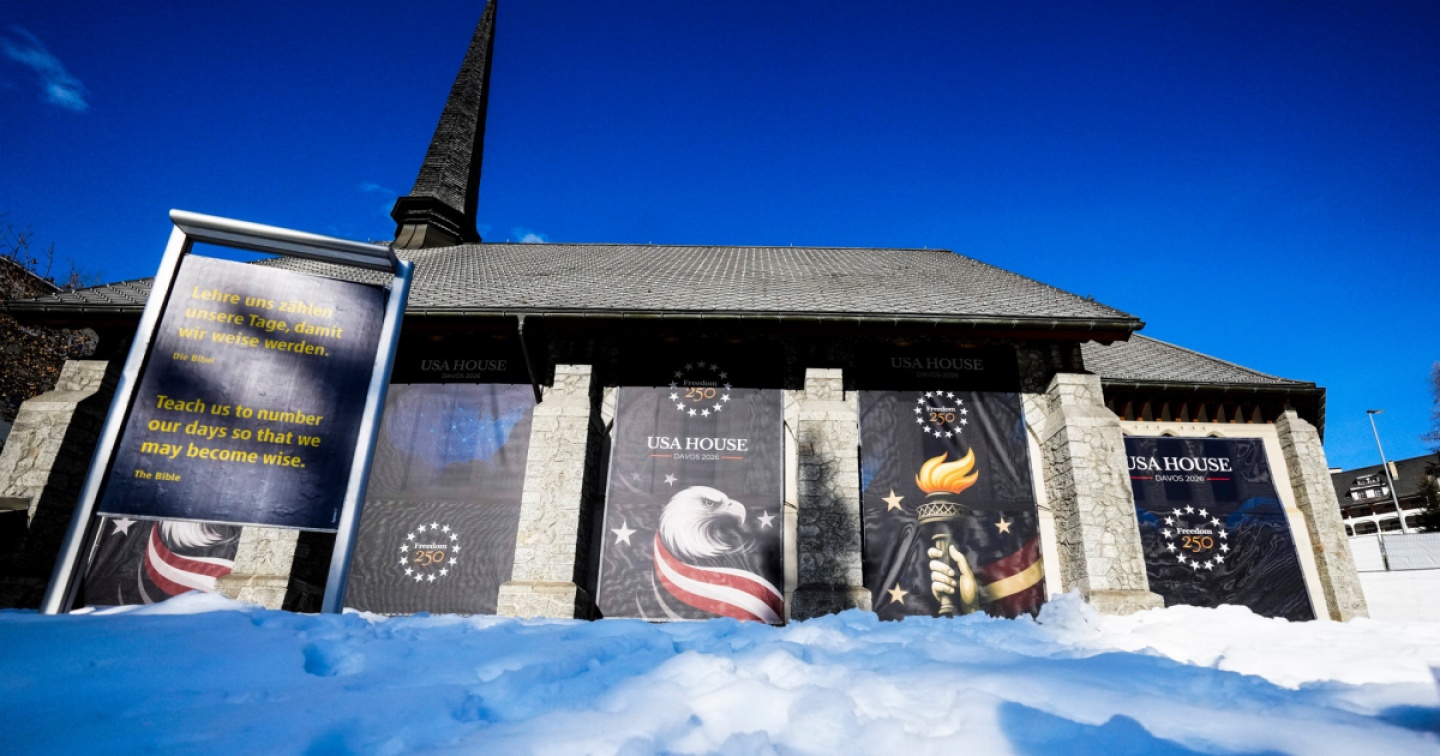 Così gli Stati Uniti hanno allestito il loro quartier generale a Davos direttamente dentro una chiesa. L’hanno presa in prestito dagli Evangelici e l’hanno americanizzata in tutto e per tutto: dentro, fuori e intorno. Hanno coperto la facciata con enormi teloni con in alto la scritta ‘Usa House’ e sotto – alternate – tre icone americane circondate da stelle e avvolte nei colori nazionali: la cupola del Campidoglio, l’aquila calva e la torcia della Statua della Libertà, la cui fiamma è passata – probabilmente non a caso – dal color oro a quello dei capelli di Trump.
