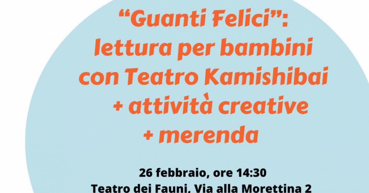 Domenica 26 febbraio, dalle 14.30, al Teatro dei Fauni di Locarno (Via alla Morettina, 2), lettura della scrittrice di Locarno Maria Di Salvatore dell’albo illustrato "Guanti Felici" (di Maria Di Salvatore e Pan Skordos) con Teatro Kamishibai. A seguire laboratorio creativo con materiale riciclato con Ester Gambotto. Portare, a scelta: un guanto di gomma; un guanto di lana spaiato; un contenitore di sapone liquido; una spugna; o un tappo di sughero. Merenda offerta. Evento organizzato dai Verdi del Locarnese. Per prenotazioni: telefonare al numero 076 471 84 94 (Marko Antunovic) o inviare un’e-mail a: verdilocarnese@gmail.com.