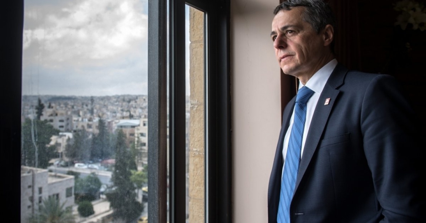 Il consigliere federale tra il relatori dell'evento per celebrare i 70 anni della Fondazione dello Stato di Israele e i 69 anni di relazioni diplomatiche con la Svizzera