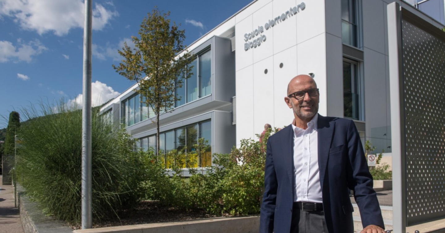 Eolo Alberti, sindaco di Bioggio, è orgoglioso della nuova struttura scolastica (Ti-Press)