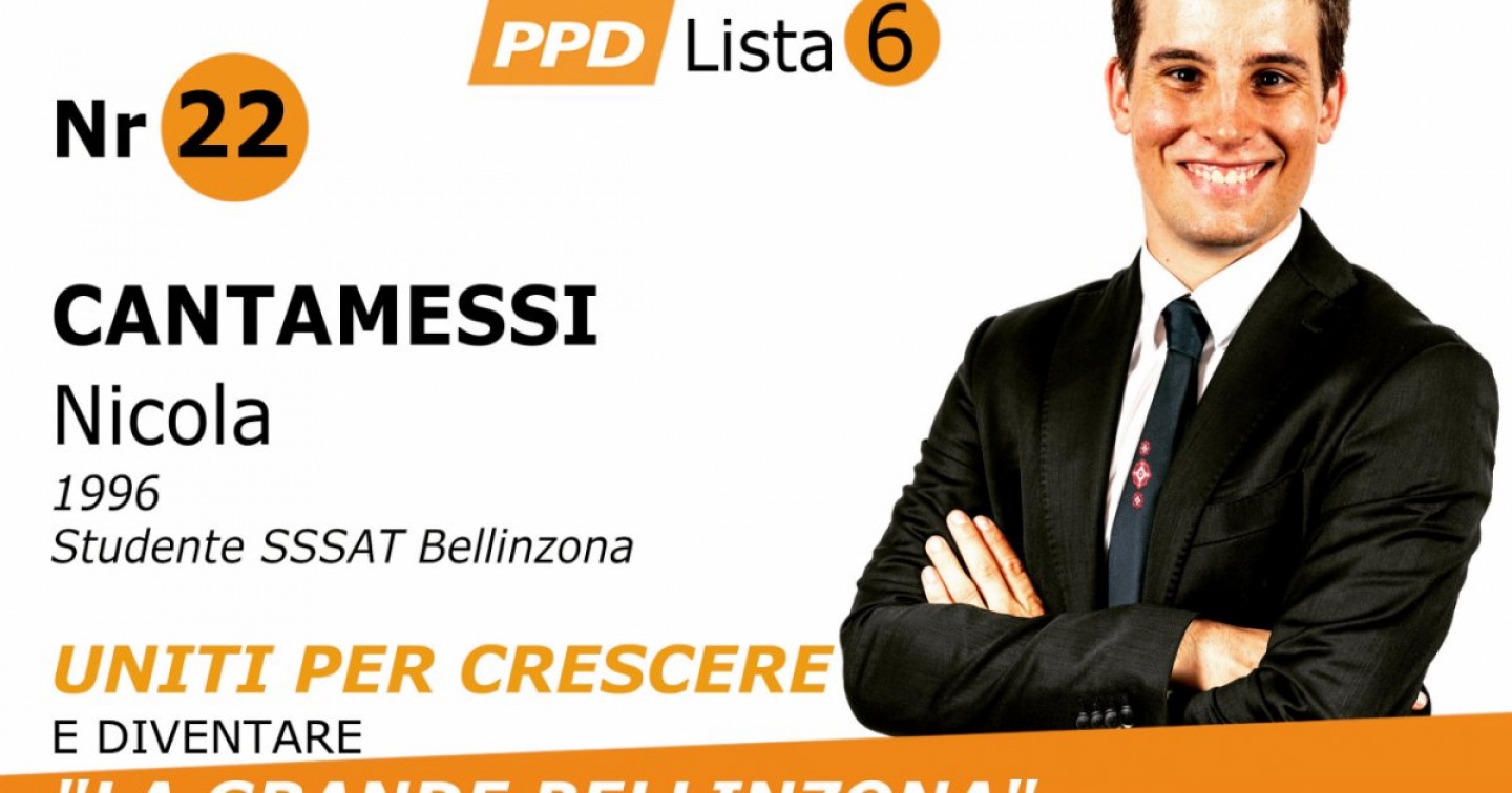 Ecco le risposte al nostro questionario di Nicola Cantamessi, candidato al Consiglio Comunale per il comune di Bellinzona sulla lista PPD/GG.