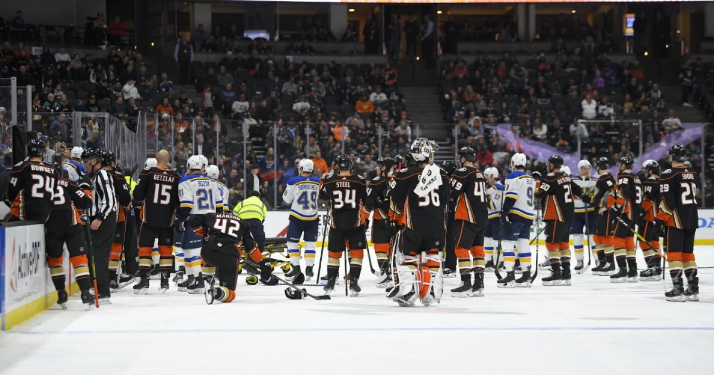 Attimi di paura ad Anaheim, dove, nel corso della partita tra i Ducks e St. Luis Blues, Jay Bouwmeester è stato vittima di un attacco cardiaco. L'episodio si è verificato poco dopo la metà del primo tempo, e la partita è poi stata interrotta.