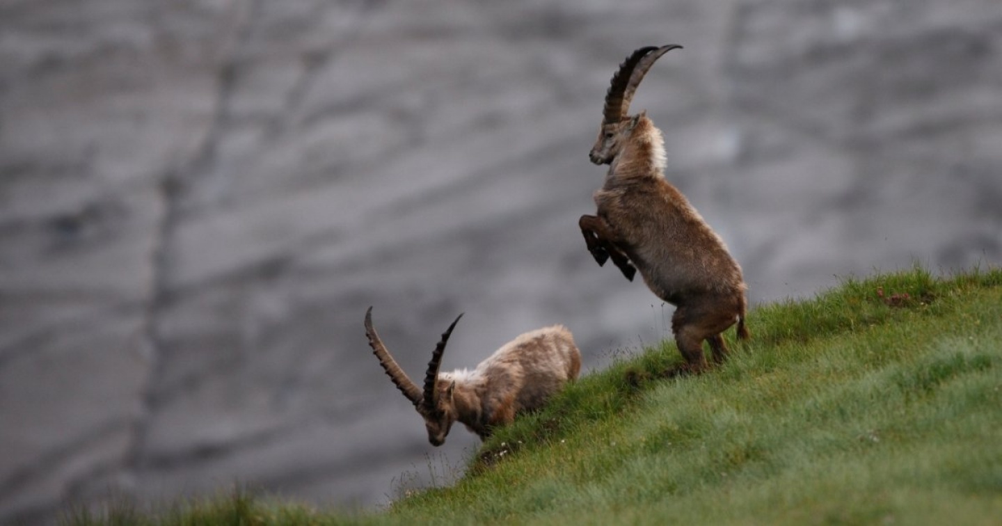 In estate gli stambecchi vivono separati dalle femmine e dai piccoli. Si battono per il posto di “capo” all’interno del gruppo, perché solo lo stambecco del rango più elevato può accoppiarsi con le femmine e occuparsi della prole. Più lunghe sono le corna e più forte è uno stambecco. Se due esemplari hanno le corna lunghe uguali devono chiarire il loro rango attraverso il combattimento. Ci sono delle regole ben precise per evitare di ferirsi. Si ergono sugli arti posteriori e battono le corna assieme creando un gran frastuono. Chi fa il botto più forte sulla fronte dell’avversario vince.