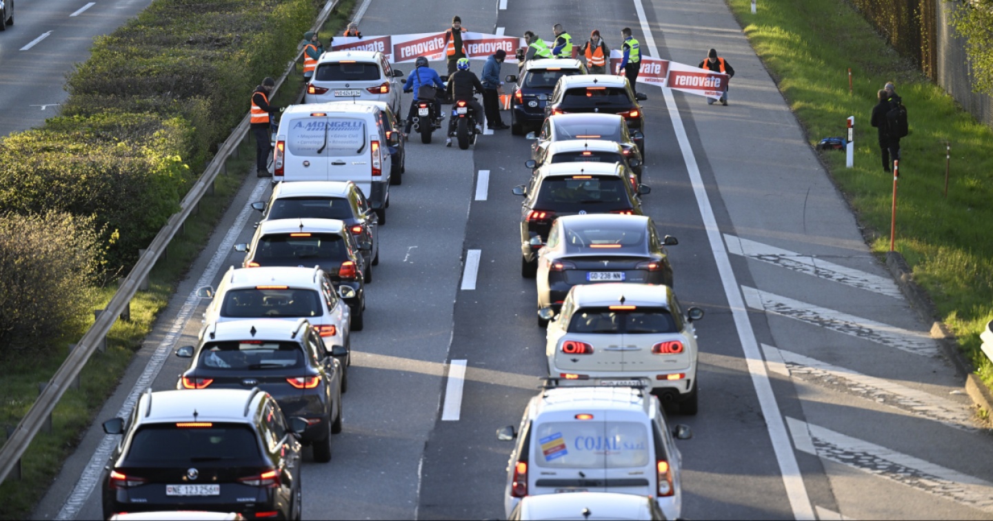Renovate Switzerland blocca un’uscita autostradale per chiedere un piano per il rinnovamento energetico degli stabili