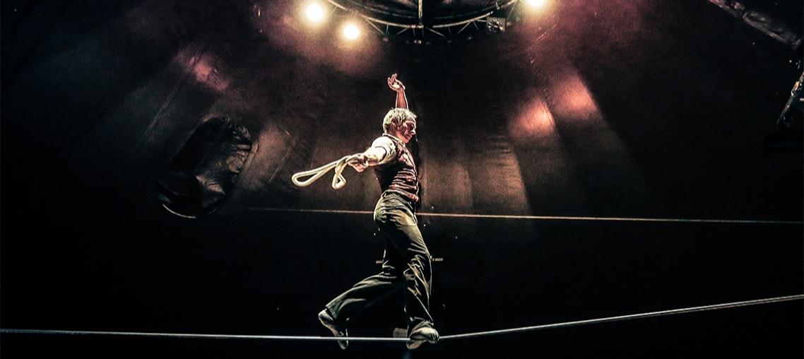Nella Tenda da Circo a Verscio: Uno spettacolo unico, che combina acrobazie, umorismo e poesia.