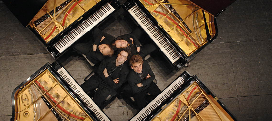 Ma per gli interpreti del Gershwin Piano Quartet i brani scritti per duo pianistico nel corso della storia della musica non erano abbastanza. Con una voglia inesauribile di sperimentare, il quartetto, nato a Zurigo nel 1996, ha creato la propria versione di capolavori del repertorio classico e del Novecento per eseguirli su quattro pianoforti a coda. Con un approccio che unisce il virtuosismo della classica con l’improvvisazione jazz si lanciano nella musica di George Gershwin, che è stato il primo compositore a ispirarli, e in capolavori del repertorio come la Quinta sinfonia di Beethoven.