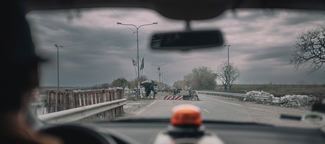 Il film è un'osservazione autentica e intima della guerra nel suo svolgersi, seguendo più generazioni di civili ucraini che, costretti ad abbandonare bruscamente le loro case, si affidano all'aiuto del furgone di volontari organizzato dal regista Maciek Hamela per far fuggire al conflitto che li mette in pericolo di vita. Mentre attraversa i campi minati per lasciare l'Ucraina e cerca di superare i numerosi posti di blocco militari, Hamela ci offre un posto in macchina, guidando il documentario da dietro le ruote e dietro la macchina da presa, attraversando le strade dell'Ucraina per trasportare in sicurezza i profughi verso la Polonia. Il furgone percorre decine di migliaia di chilometri e diventa sala d'attesa, ospedale, rifugio e zona di confidenze e confessioni tra compatrioti riuniti per caso. In the Rearview è un ritratto collettivo composto da una serie di esperienze di persone accomunate da un unico obiettivo: trovare un rifugio sicuro dal conflitto.