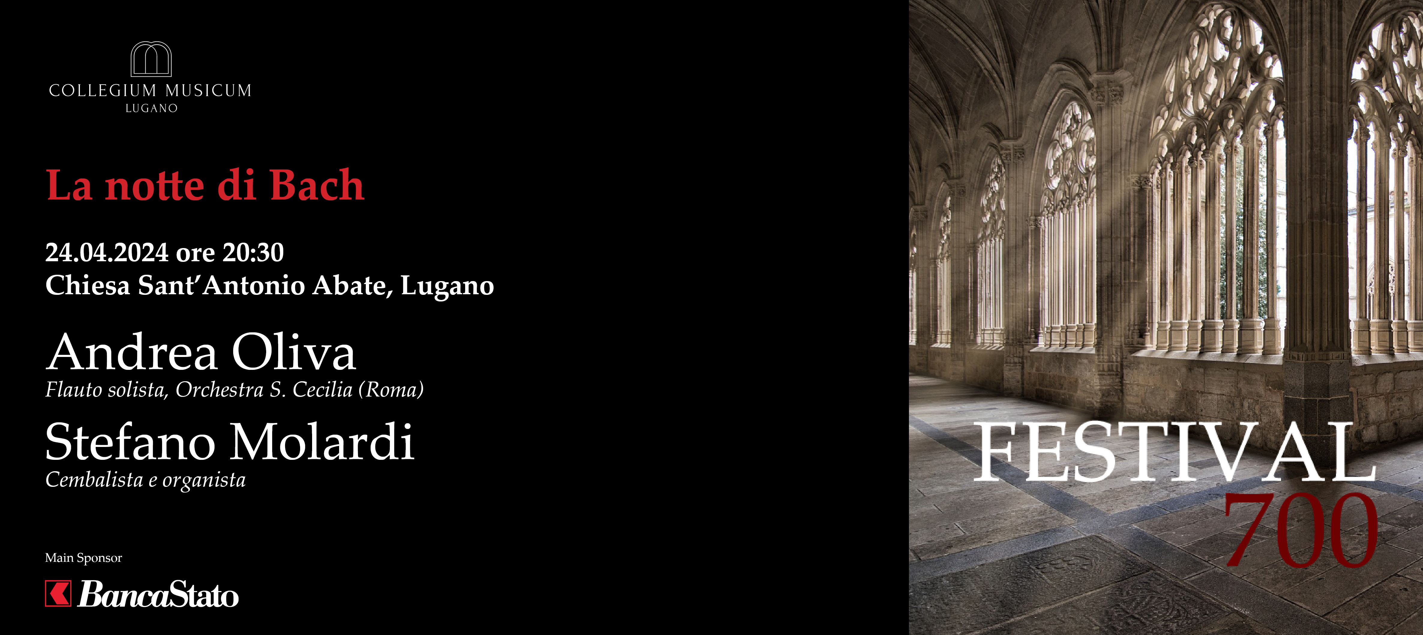 Un concerto dedicato alle composizioni di Johann Sebastian Bach eseguite da Andrea Oliva, primo flauto solista dell’Orchestra dell’Accademia S. Cecilia di Roma e da Stefano Molardi, barocchista di fama internazionale.