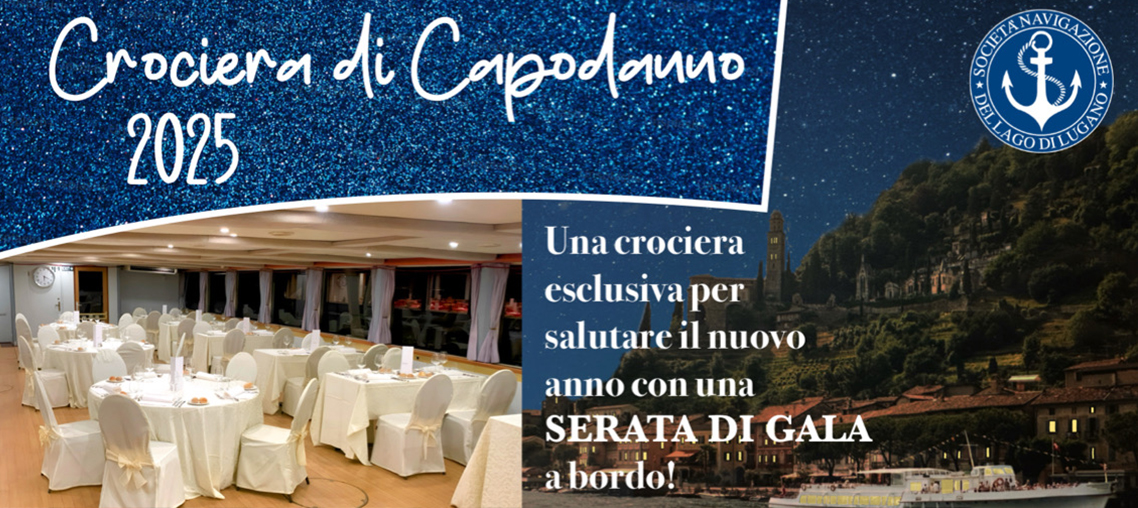 La Società Navigazione del Lago di Lugano è lieta di invitarVi a una serata esclusiva per accogliere il 2025 con eleganza e raffinatezza.