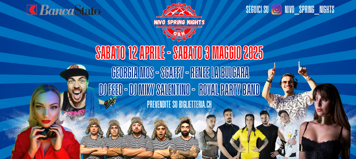 Vivi una magnifica primavera all’insegna della musica a Nivo. Ci troviamo a pochi minuti dalle uscite autostradali A2 di Chiggiogna e Giornico. La location offre un grande capannone immerso nel verde, un’atmosfera confortevole e posteggi asfaltati gratuiti.