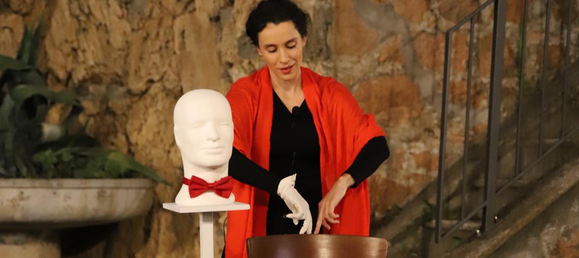 Isabella Giampaolo è un’artista poliedrica, attrice-creatrice, performer di teatro fisico e artista visiva. Il suo percorso formativo è ricco e internazionale: ha iniziato con la danza hip-hop, ha conseguito un diploma in Arte e Design presso la University for the Creative Arts nel Regno Unito, ha studiato recitazione a Roma presso la European Union Academy of Theatre and Cinema e ha ottenuto un diploma in Arti Performative presso il Canadian College of Performing Arts in Canada. Inoltre, ha completato un Master all’Accademia Teatro Dimitri in Svizzera.