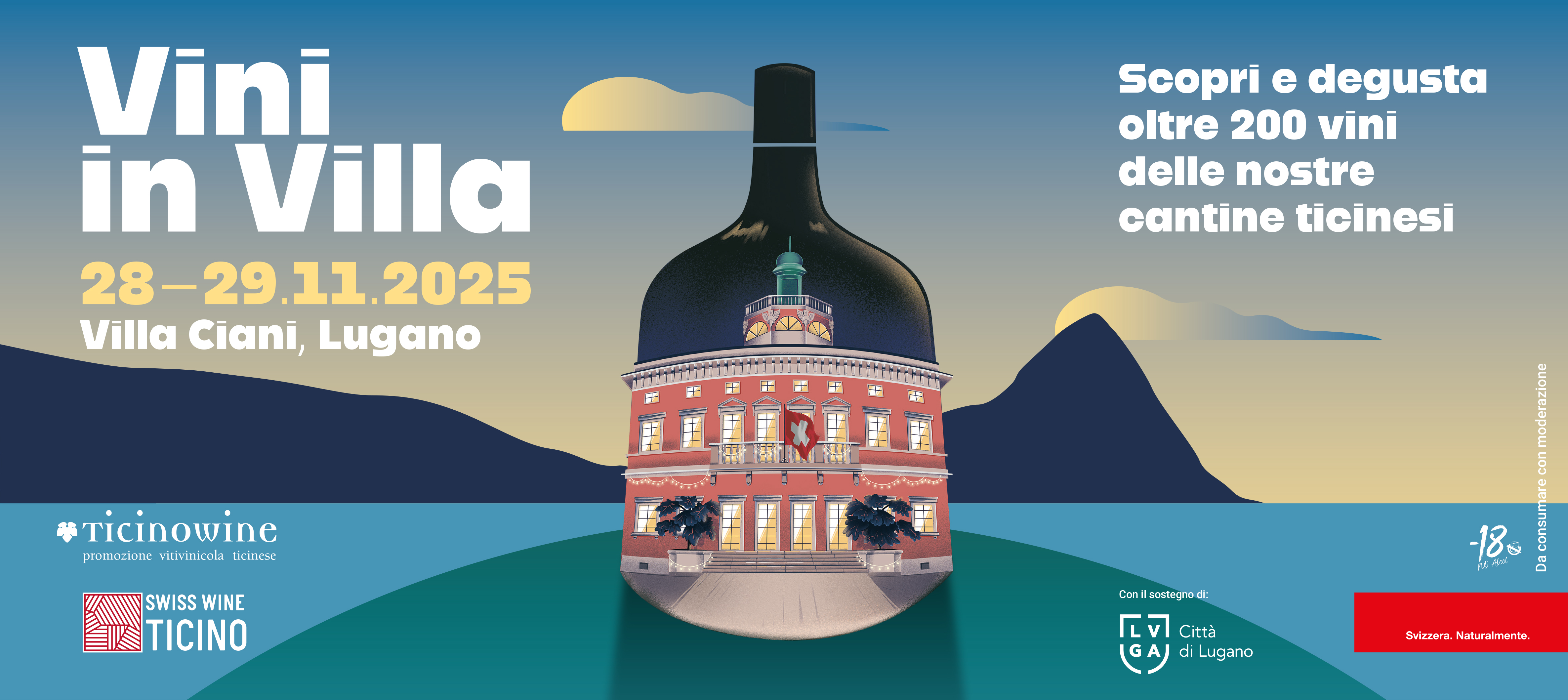 Un’occasione speciale per incontrare i produttori, scoprire le loro storie e degustare vini che raccontano la passione e la tradizione del nostro territorio. Dai grandi Merlot Ticino DOC alle etichette più sorprendenti, ogni calice saprà emozionare. Nella cornice di Villa Ciani, una quarantina di cantine presenteranno oltre 200 vini: un vero viaggio sensoriale tra i sapori del Ticino.