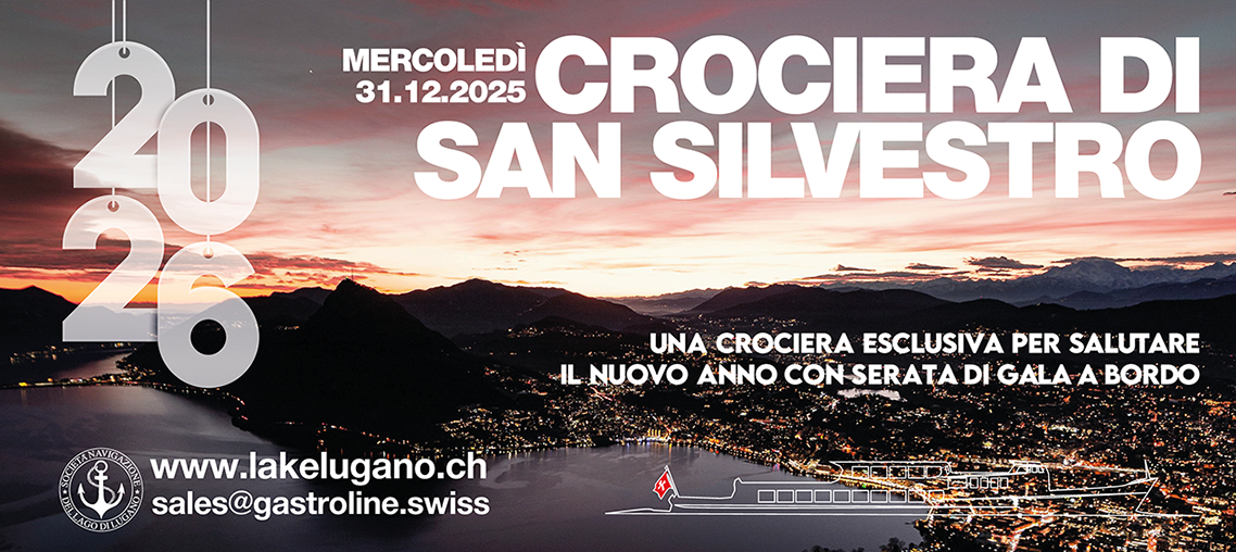 La Società Navigazione del Lago di Lugano è lieta di invitarVi ad una serata esclusiva per accogliere il 2026 con eleganza e raffinatezza.