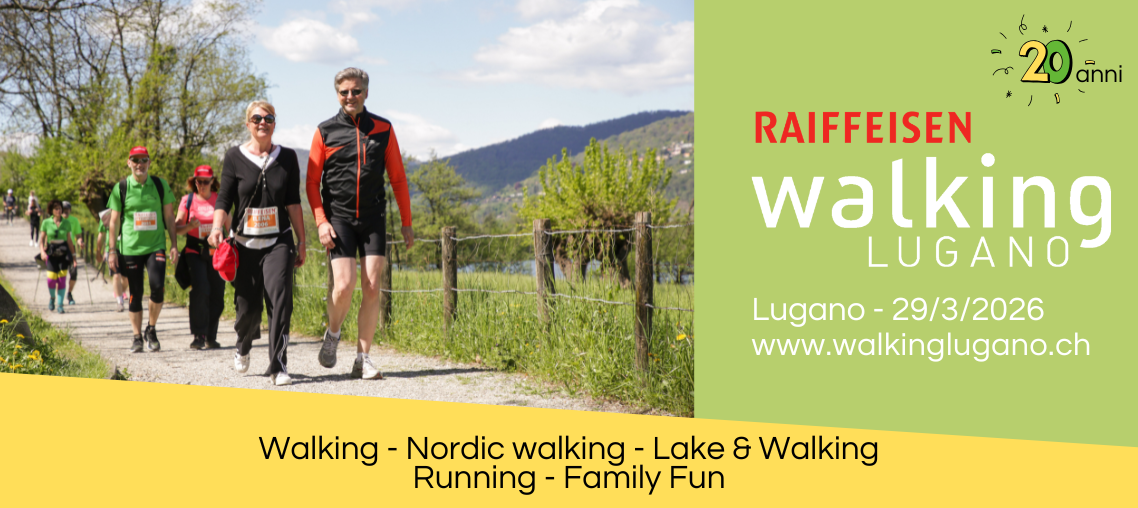 Domenica 29 marzo 2026 festeggia 20 anni di Raiffeisen Walking Lugano!