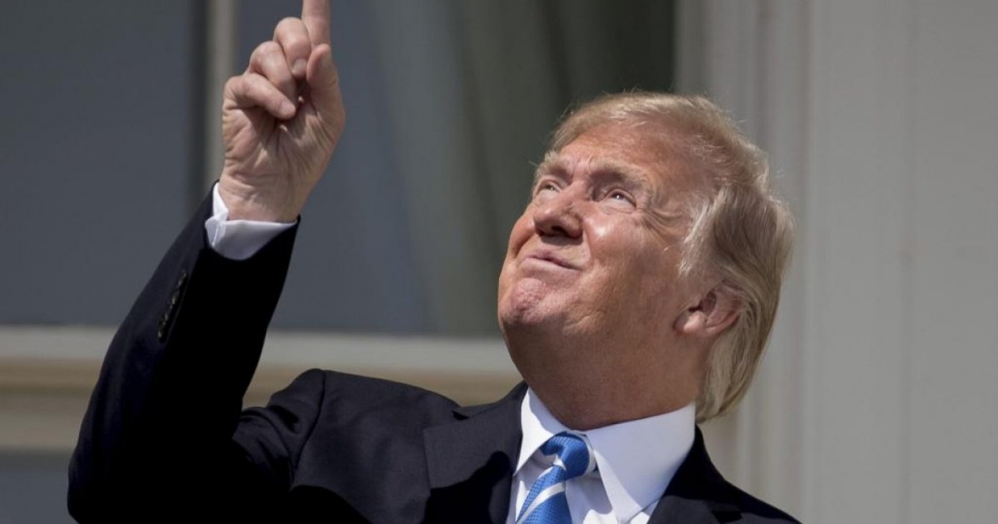 Il presidente degli Stati Uniti Donald Trump sbircia per qualche secondo il sole senza occhiali protettivi mentre è in corso l’eclissi, contravvenendo così ai consigli ripetuti da più parti di proteggere accuratamente gli occhi. Al punto che collaboratori del presidente gli urlano: “Non guardi!”, mentre, con accanto la first lady Melania e il figlio minore Barron, Trump si gode lo spettacolo dal portico sul lato sud della Casa Bianca, inforcando poi gli appositi occhiali. Immagini mostrano il presidente Usa sul balcone della Casa Bianca intitolato a Truman che si toglie momentaneamente gli occhiali protettivi, saluta la folla sul prato e rivolge brevemente lo sguardo in su, puntando con il dito al cielo, quando un suo collaboratore lo invita a non guardare, stando a quanto riferito da giornalisti al seguito. Il presidente rimane poi a godersi il fenomeno, con gli occhialini protettivi, per circa un minuto e mezzo durante il picco raggiunto a Washington intorno alle 14.40 locali (le 20.40 in Svizzera). Quando un reporter gli chiede “com’è la vista” il presidente risponde con i pollici alzati. Diversi membri dell’amministrazione e collaboratori del presidente erano presenti alla Casa Bianca per ammirare l’eclissi: il ministro della Giustizia, Jeff Sessions, il ministro del Commercio, Wilbur Ross, la consigliere Kellyanne Conway, la responsabile della comunicazione (ad interim) Hope Hicks e Ivanka.