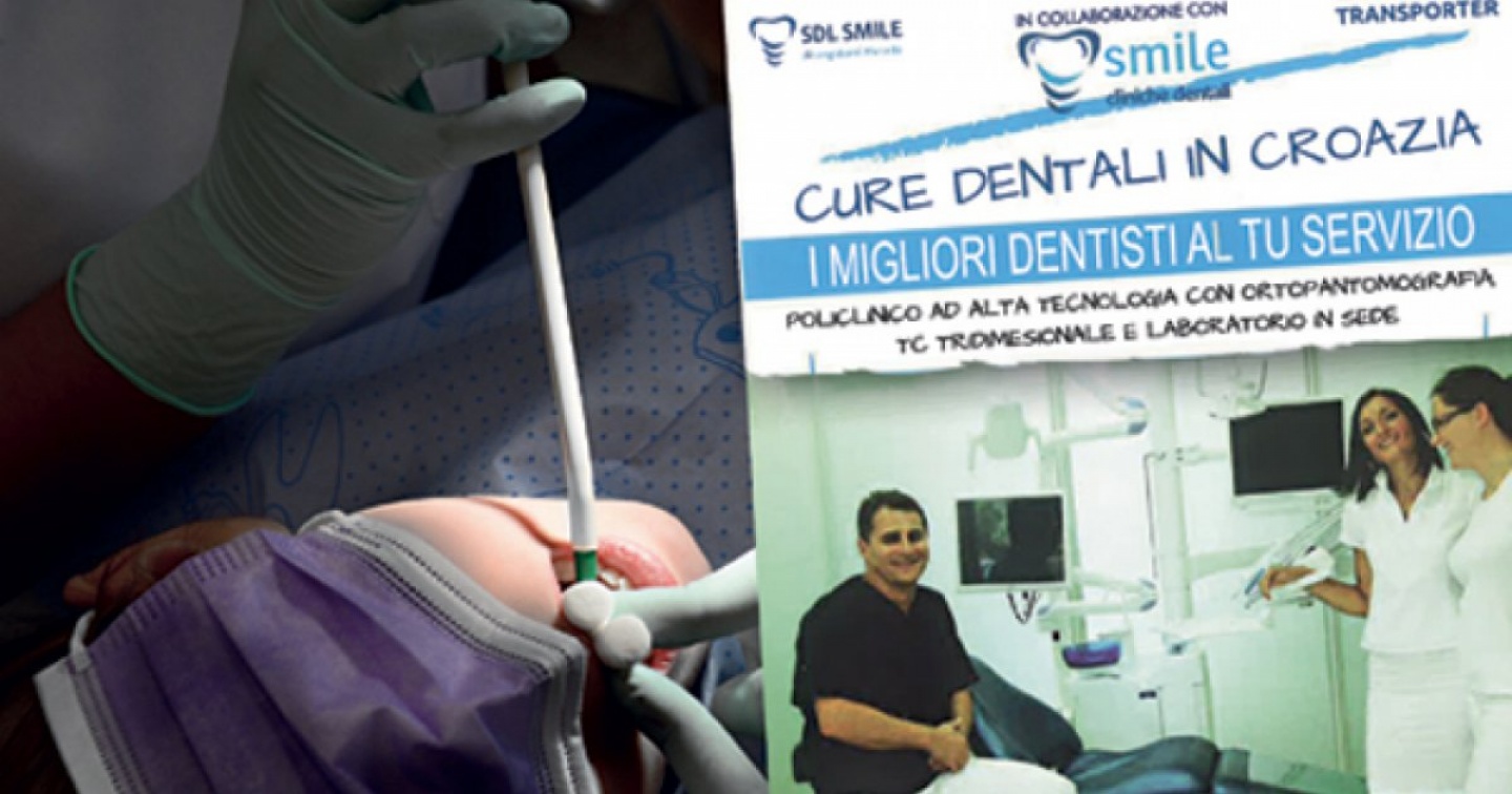 Partire da Bellinzona in piena notte con un pulmino diretto in Croazia e rientrare la sera successiva, dopo aver fatto una visita dentistica e aver ricevuto un preventivo sui possibili interventi necessari. Il costo? 150 franchi, tutto compreso. Il pendolarismo dentistico, conosciuto in particolare dai medici che operano nelle zone di confine, fa capolino anche nel Sopraceneri, con un’offerta mirata proprio ai cittadini di Bellinzona. La proposta è infatti contenuta in un volantino arrivato negli scorsi giorni nella bucalettere di alcune zone del Bellinzonese. Frasi con errori ortografici come “I migliori dentisti al TU servizio”, ma anche “Tutto in UN UNICA clinica” (senza apostrofo) non trasmettono l’idea di un lavoro di marketing molto curato. Non viene peraltro indicato il nome del o dei dentisti, né la città in cui ci si recherà. Unico riferimento, il nome di battesimo di un referente (con numero telefonico svizzero) e del titolare di Sdl Smile (con recapito telefonico italiano), impresa che da nostre ricerche risulta registrata in provincia di Varese. Attività dichiarata sul registro italiano delle imprese: “Procacciatore di affari in ambito odontoiatrico”. E sul retro del volantino – dove si trova la foto presumibilmente di un dentista e di due assistenti dentali – s’intravede il nome della clinica: Poliklinika Smile.