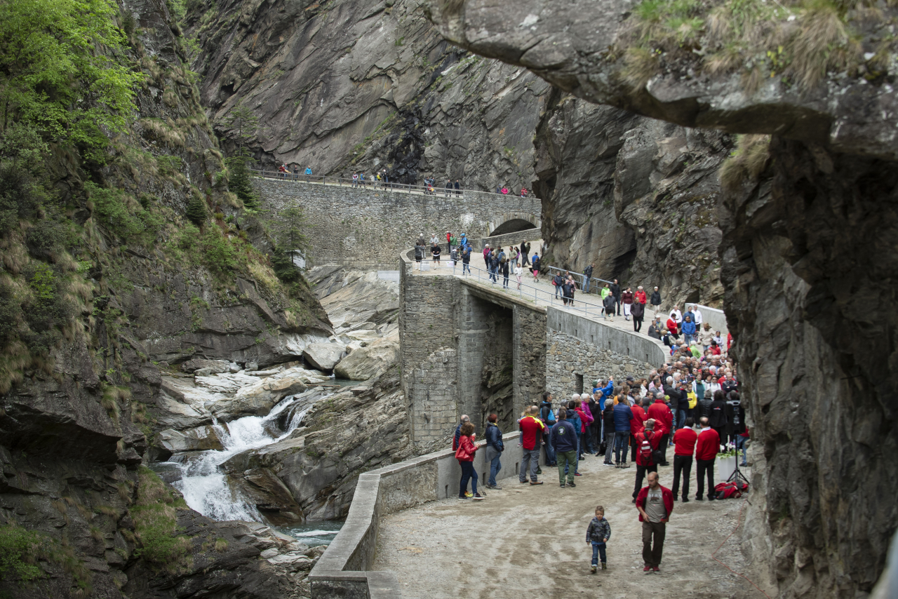 È stata inaugurata oggi con una festa popolare allietata da alcune compagini musicali della zona la via storica della Gola del Piottino, resa di nuovo accessibile dopo l’ultima fase dei lavori di ripristino a seguito di frane e cedimenti, durata 4 anni e costata 1,37 milioni. Numerosi gli interventi durante la parte ufficiale, tra cui quelli del consigliere di Stato Norman Gobbi e del suo omologo del canton Uri Dimitri Morelli. I lavori sul sedime di proprietà della Degagna di Osco sono stati promossi dall’associazione Pro Media Leventina.