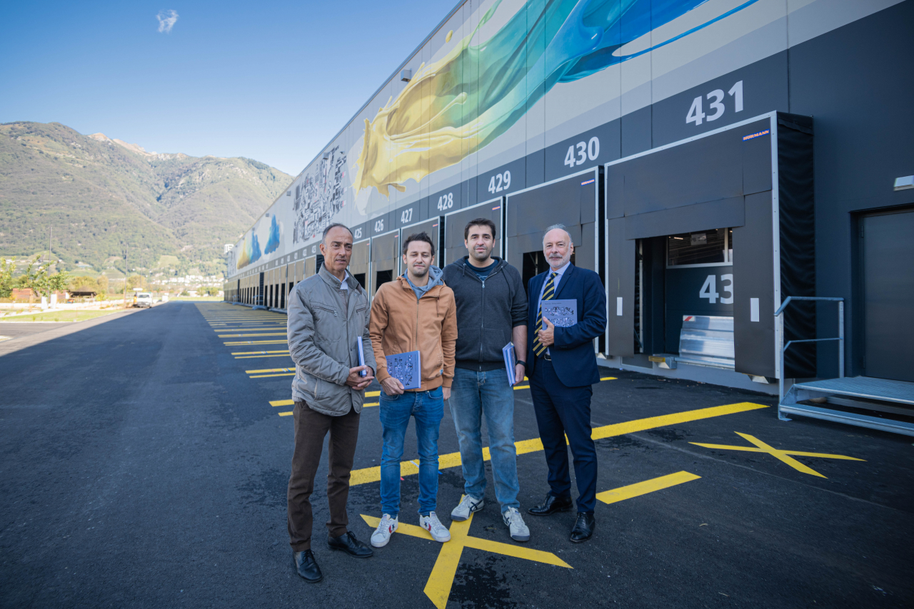 ‘Shifting machine’, realizzato dall'eccellenza ticinese nel campo della street art mondiale, campeggia sul futuro Centro pacchi regionale della Posta a Cadenazzo