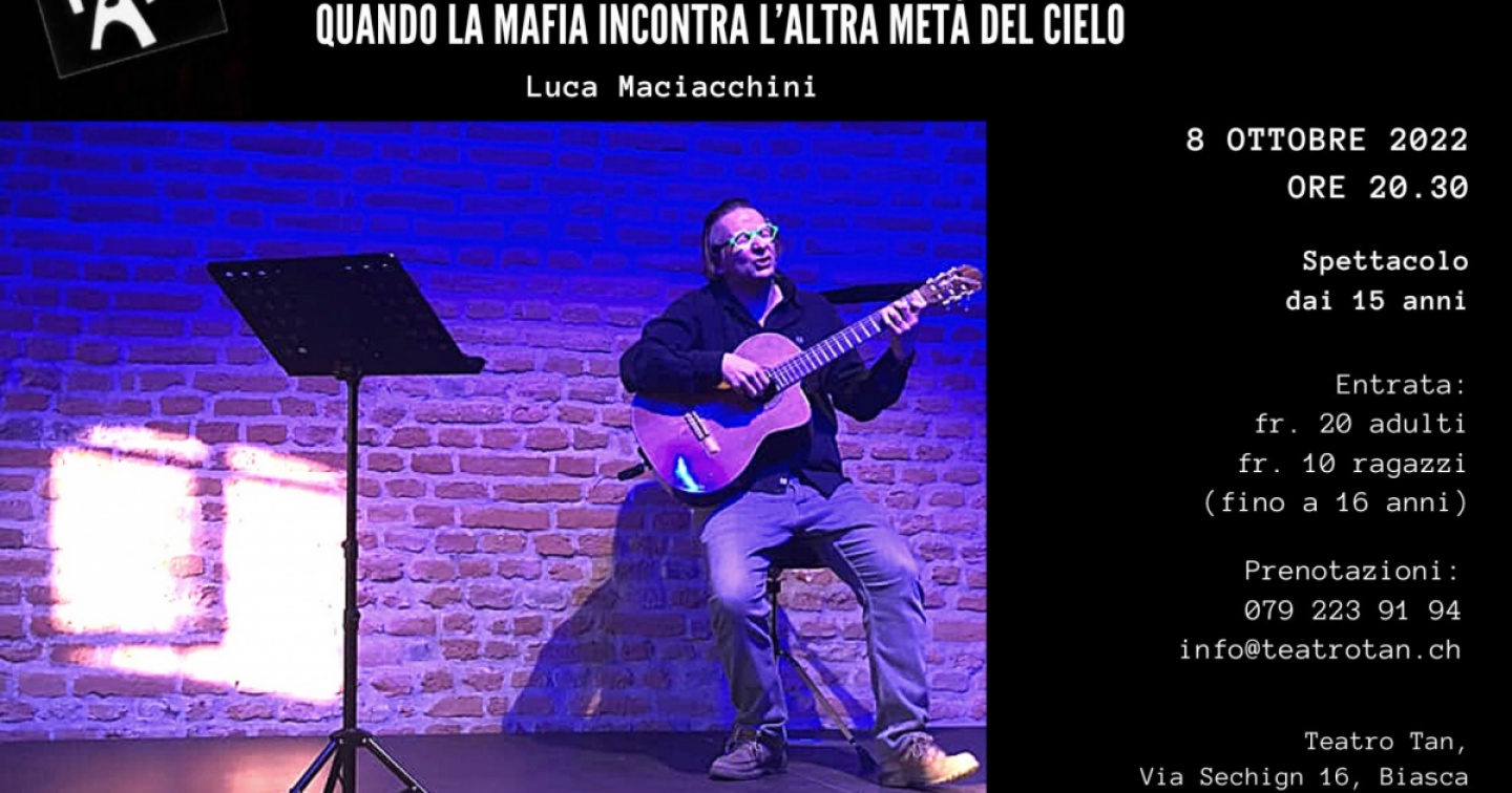 ‘Semplicemente donne: quando la mafia incontra l’altra metà del cielo’ è il titolo dello spettacolo (dai 15 anni d’età) che Luca Maciacchini porterà sul palco del Teatro Tan di Biasca sabato 8 ottobre alle 20.30. Gradita la prenotazione a info@teatrotan.ch o 079 223 91 94. Scritto e interpretato con lo stile e i canoni del moderno teatro di narrazione e accompagnato da musiche e canzoni originali, ‘Semplicemente donne’ è la storia di alcune mamme, compagne, figlie, sorelle, mogli e fidanzate che, in modi molto diversi tra loro, alla mafia hanno fatto e fanno la guerra o ne sono diventate vittime indirette nel momento in cui hanno perso un marito, un fratello, un figlio.