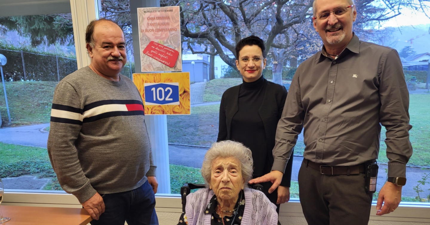 Erminia Addor di Cadenazzo mercoledì 7 dicembre ha superato la bella età di 102 anni attorniata dai familiari