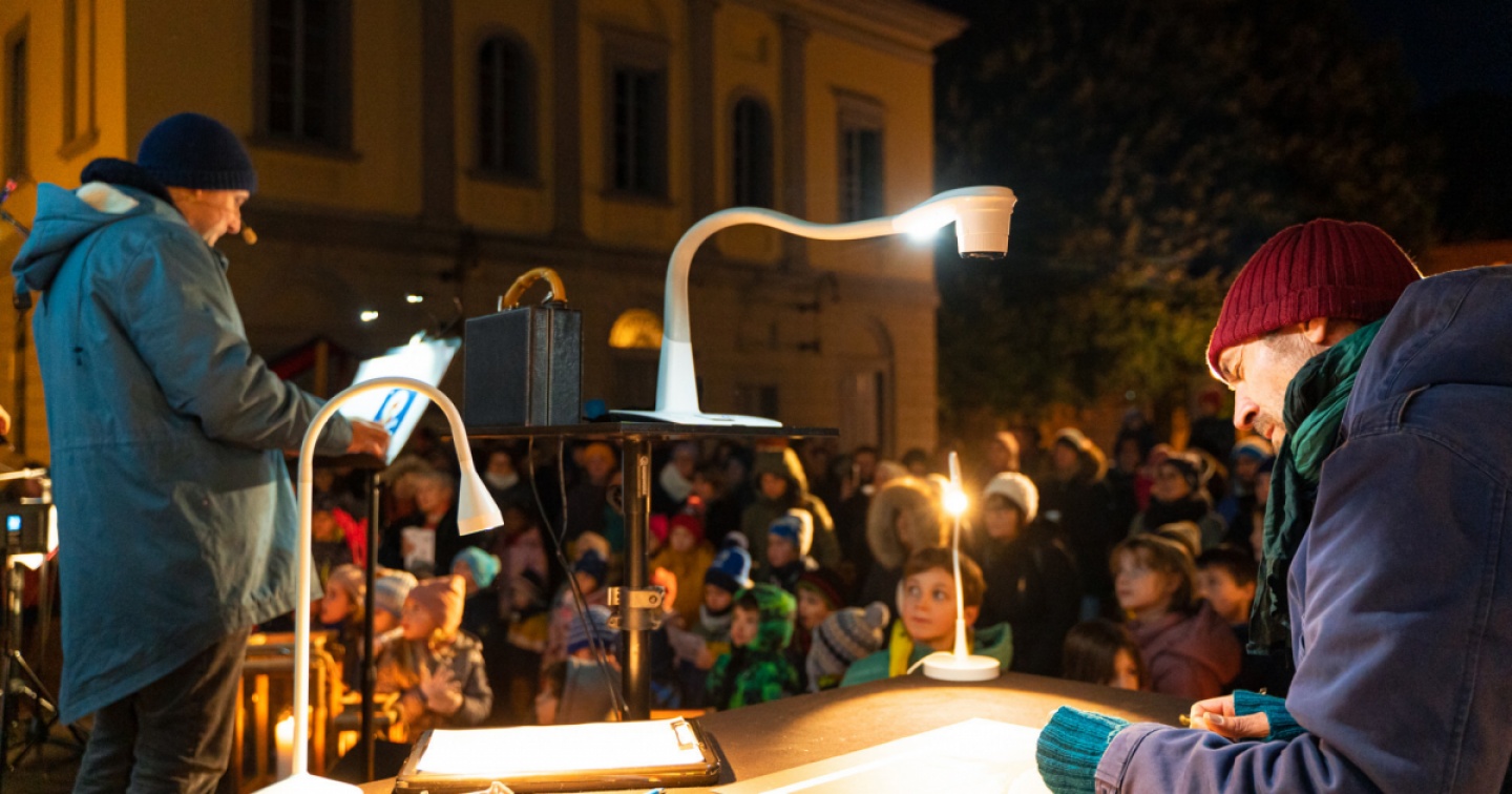 Domenica 18 dicembre nella corte di Palazzo Civico Andrea Fazioli rivelerà la fine del racconto. Fra mercatini e musica continua Natale in Città