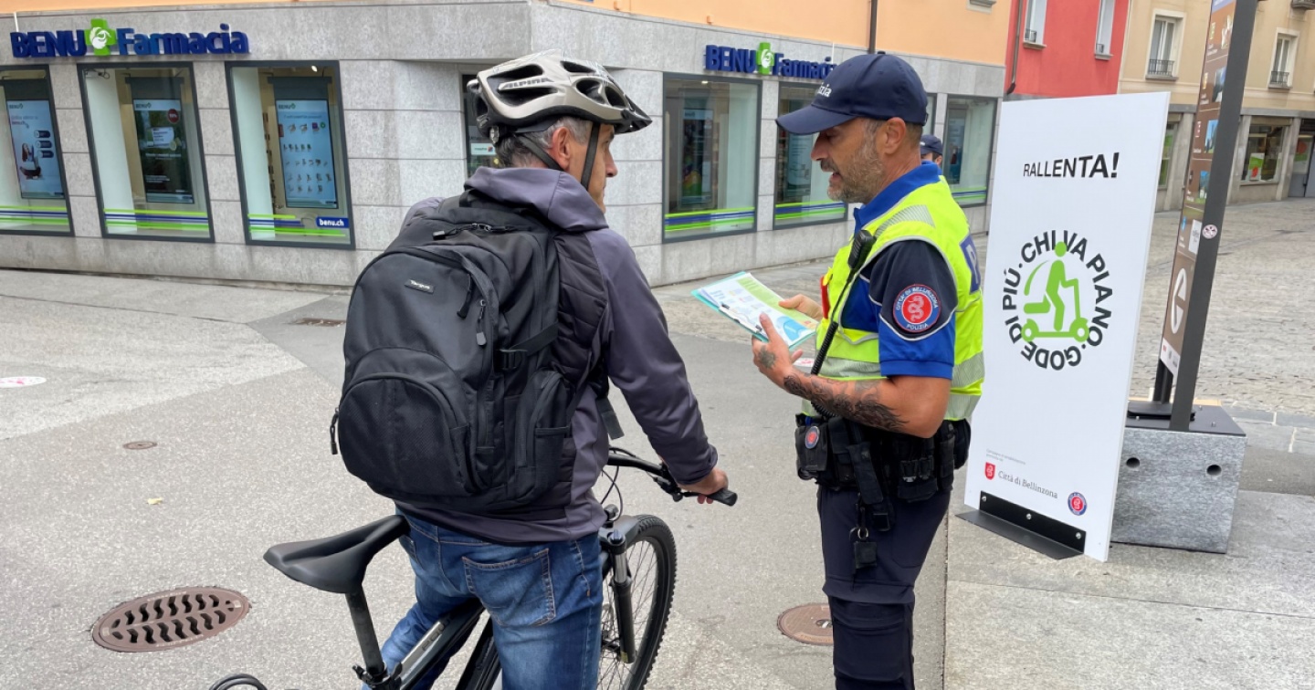 «Abbiamo ricevuto lamentele da parte di pedoni che sono stati colpiti di striscio da ciclisti» nel centro storico pedonale di Bellinzona. A confermarci questa convivenza problematica dovuta anche all'eccessiva velocità è stato Andrea Cremonini, responsabile servizio esterno della Polizia comunale, durante un incontro coi media avvenuto all’imbocco di via Codeborgo, arrivando da Piazza del Sole. E questo è proprio uno dei luoghi sensibili (assieme, ad esempio, a via Camminata, via Teatro o Piazza Collegiata) dove nelle prossime settimane si posizioneranno agenti che informeranno i passanti in bici o su un monopattino elettrico sulle regole in vigore, ricordando che in un’area pedonale la precedenza ce l’hanno le persone che si spostano a piedi. «Invitiamo a rispettare il pedone ad agire con buon senso», ha aggiunto il tenente.