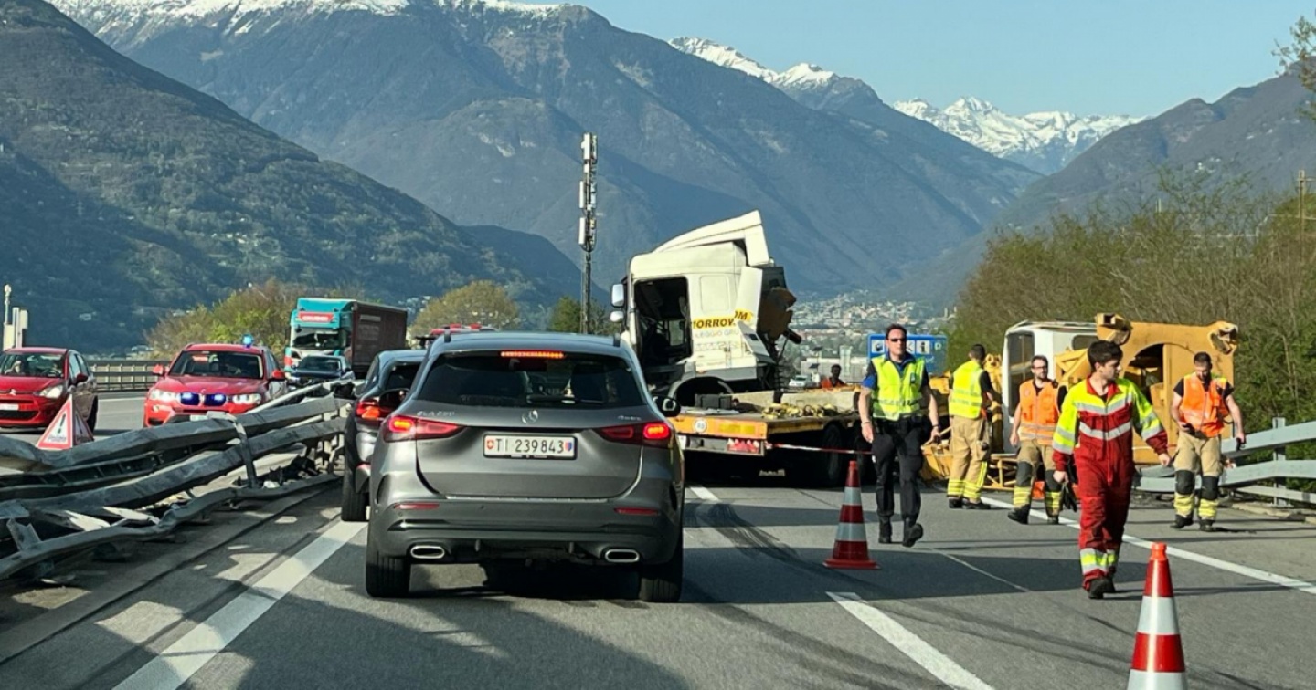 Stando al comunicato della Polizia cantonale, e per cause che l'inchiesta dovrà stabilire, poco dopo la galleria del Monte Ceneri un mezzo pesante, che si dirigeva verso nord, si è scontrato con il guardrail, per poi terminare la sua corsa ostruendo la carreggiata.