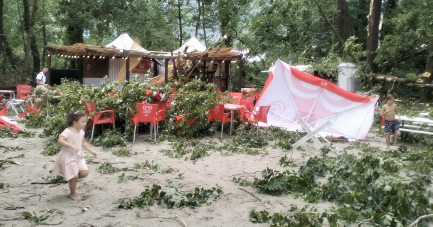 Ombrelloni volati via e alberi caduti sulle infrastrutture, ma nessun ferito serio. Il gerente: ‘Encomiabile l’aiuto reciproco’