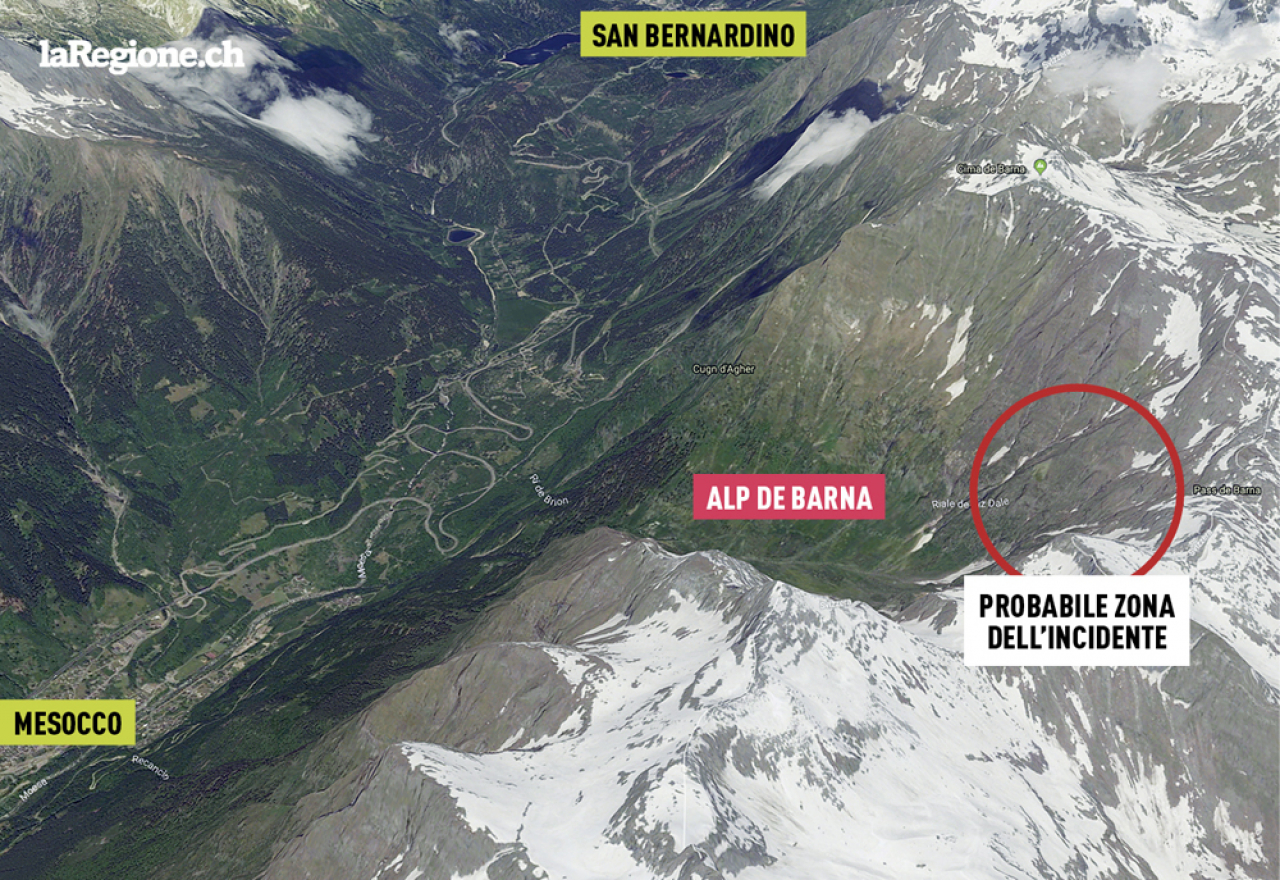 Si è protratta per lunghe ore l'operazione di salvataggio delle due persone rimaste coinvolte oggi pomeriggio in un grave incidente con la motoslitta, avvenuto in Mesolcina, sopra Mesocco. La polizia cantonale grigionese ha confermato la notizia alla Rsi (che l'ha anticipata); non sono però stati forniti ulteriori dettagli sulle persone coinvolte. Si tratterebbe di due cittadini italiani e pare che uno dei due avrebbe riportato ferite gravissime dopo essere caduto in un burrone per alcune centinaia di metri. L'infortunio si è verificato a oltre duemila metri di quota, in zona Alp de Barna. Il campo base per i soccorritori è stato allestito a Mesocco e sono impegnati nella ricerca anche diversi elicotteri.