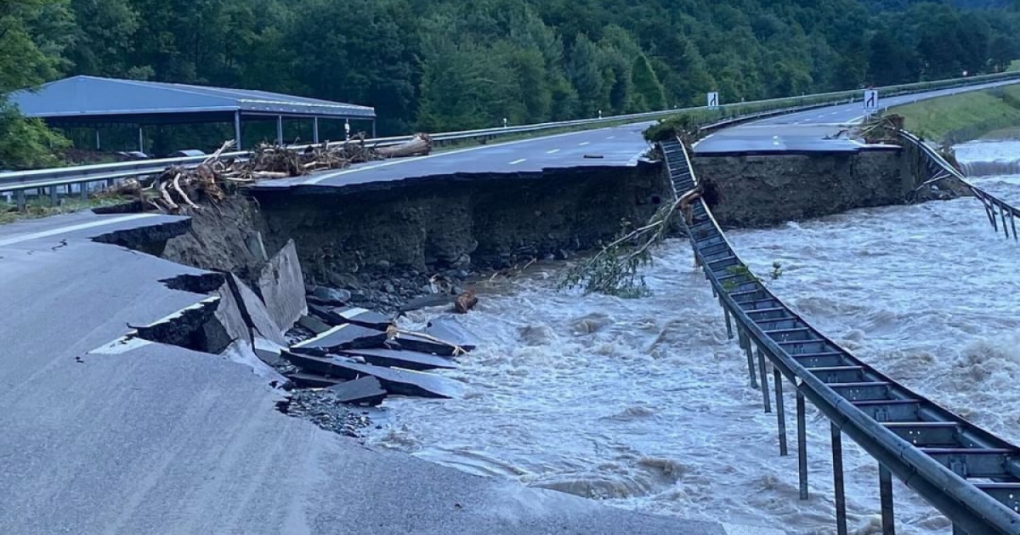I fiumi hanno rotto gli argini, le strade sono state allagate e hanno dovuto essere chiuse. Intanto l'autostrada A13 e la strada cantonale sono state chiuse tra San Vittore e il portale nord della galleria del San Bernardino. In particolare l'autostrada è stata spazza via dalla furia dell'acqua (vedi foto) per un tratto di circa 150 metri fra Soazza e Mesocco. L'accesso da nord in direzione Roveredo non è quindi possibile. Le informazioni sull'accessibilità delle strade nazionali e cantonali sono disponibili sul sito www.strassen.gr.ch.