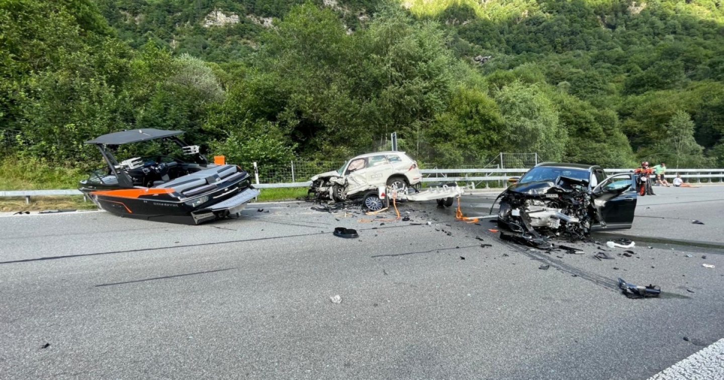 Sul luogo dell'incidente sono intervenuti anche il medico di servizio, collaboratori dell'Ufficio tecnico dei Grigioni nonché due agenti di polizia fuori servizio. Le due automobili, totalmente danneggiate, come pure il rimorchio con caricato il motoscafo, sono state recuperate da tre carri attrezzi. La Polizia cantonale dei Grigioni ha avviato gli accertamenti per determinare la causa dell'incidente.