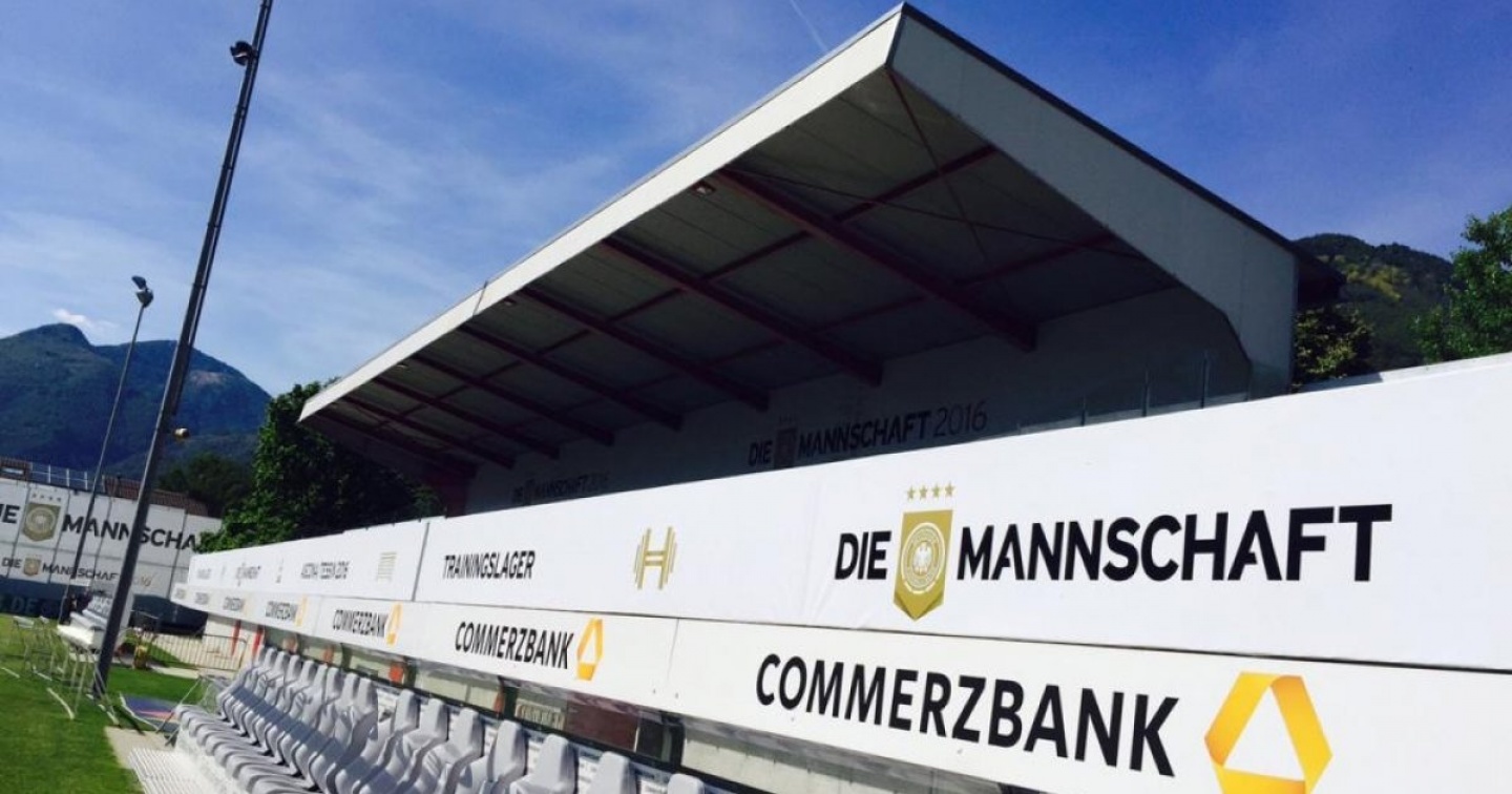 Terreno in perfette condizioni, tribuna debitamente addobbata e sguardi indiscreti rigorosamente banditi. È il "nuovo" centro sportivo comunale di Ascona che da oggi, per una decina di giorni, diventa la casa della Nazionale germanica di calcio in vista degli Europei francesi del prossimo mese. La "Regione", in esclusiva, pubblica le immagini del "gioiello" dove i ragazzi allenati dal ct Jachim Löw prepareranno il loro assalto alla rassegna continentale.