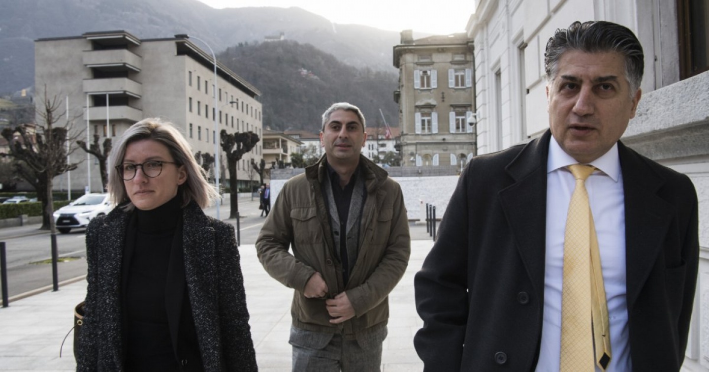 Al centro, Johan Cosar. Ai lati, i suoi legali (Ti-Press)