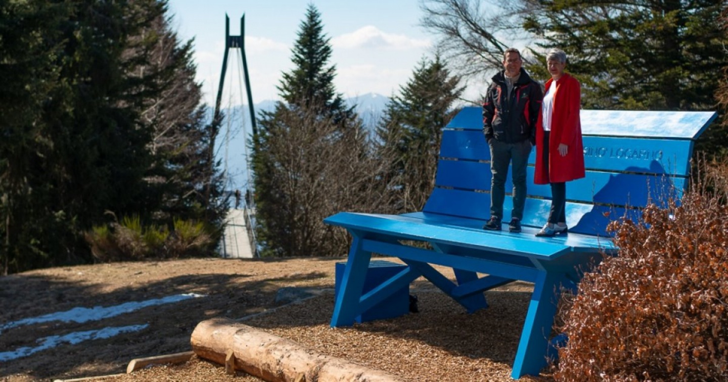 Trasloco in quota per la panchina da record che campeggiava all'esterno del Casinò di Locarno. Con l'avvento della primavera, e la necessità di riallestire la terrazza del Teatro, il "panchinone" era destinato forse a qualche magazzino, se non che... qualcuno, a Cardada, ci ha messo su gli occhi immaginando di poter dare alla maxistruttura una nuova funzione: quella di singolare punto di osservazione.