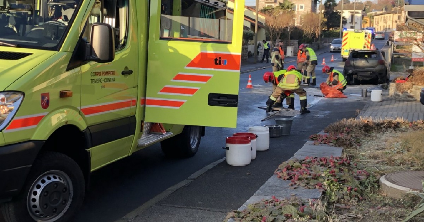 Pompieri di tenero-Contra al lavoro, stamane, atorno alle 8, sulla strada cantonale in territorio di Cugnasco. In via Locarno, una vettura ha infatti improvvisamente preso fuoco. Il conducente è riuscito a mettersi in salvo in tempo. L'opera di spegnimento e di pulizia del campo stradale ha causato inevitabili disagi al traffico, particolarmente intenso a quell'ora. Sul posto, oltre ai pompieri, anche la polizia per i rilievi del caso e il disciplinameno del traffico
