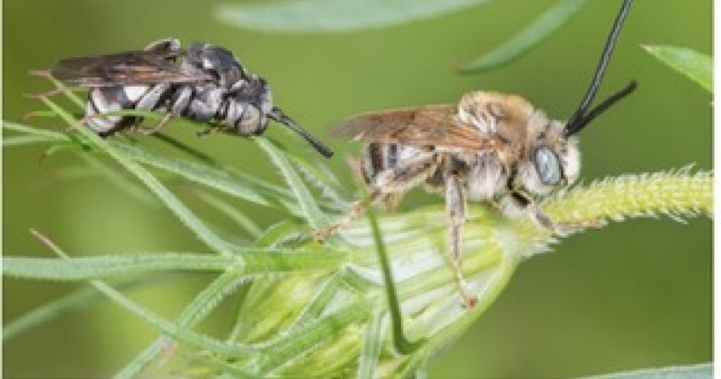 L'ape in questione è la Triepeolus tristis, le cui ultime osservazioni risalgono al 1939 e al 1942, ma a Sierre. La Triepeolus tristis ha la particolarità di essere un parassita: la femmina non fa il proprio nido ma lascia le sue uova nei nidi d’altre specie di api selvatiche, in questo caso di Tetralonia dentata, una cui popolazione di un centinaio di individui vive nei prati golenali. La biologia di Tristis è ancora poco conosciuta: si pensa che la femmina depositi le sue uova nelle celle ancora aperte di Dentata scavate nel terreno. Per trovare i nidi, il parassita fa piccoli voli a zig zag al livello del suolo. Una volta trovato l’ingresso di un nido, vi entra quando la femmina dell’ospite è fuori e scava una nicchia nella parete laterale della cella per nascondere un uovo. Dentata, ignara della presenza del parassita, continua a riempire la cella di polline e nettare e, quando piena, vi deposita un suo uovo prima di sigillarla e ricoprire il tunnel d’entrata. Dopo qualche giorno, la giovane larva di Tristis esce dal suo uovo ed elimina quello dell’ospite. La larva si sviluppa allora mangiando la riserva di cibo e passa l’inverno ben protetta nella cella nel suolo, per poi emergere come adulto l’estate seguente.