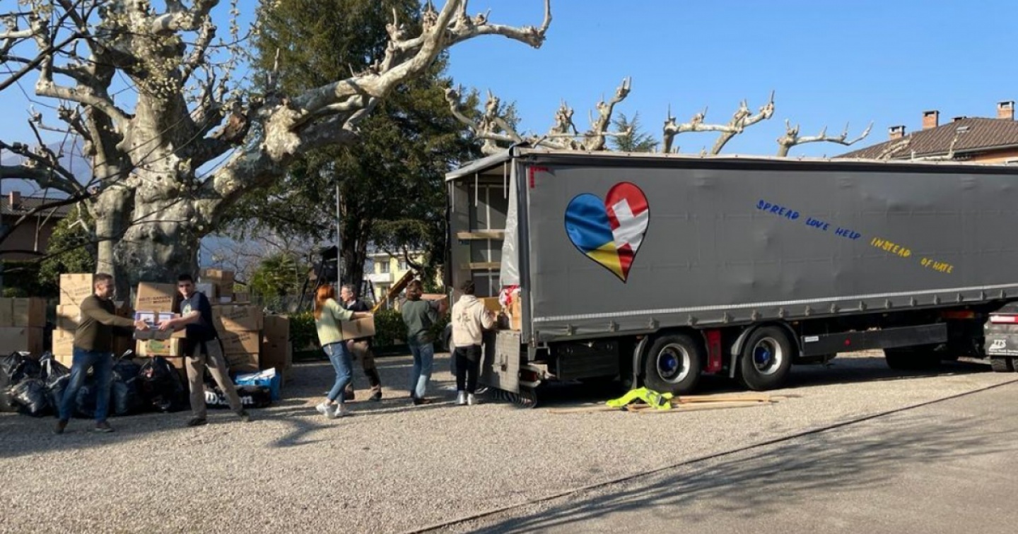 Il rimorchio del tir è stato caricato con 12 tonnellate di beni, raccolti da un’azione condivisa partita nel Sottoceneri per la popolazione ucraina
