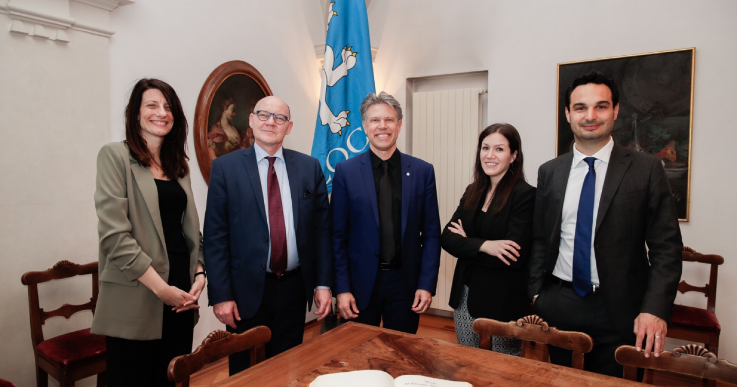 Nell’ambito degli incontri di presentazione del nuovo console generale d’Italia a Lugano alle autorità elvetiche, giovedì 31 marzo, Gabriele Meucci e la sua vice Carla Brugnoli sono stati accolti a Palazzo Marcacci da una delegazione dell’esecutivo, composta dal sindaco Alain Scherrer e dai municipali Nancy Lunghi e Nicola Pini, il quale – ricordiamo – è anche l’attuale presidente del Gran Consiglio ticinese.