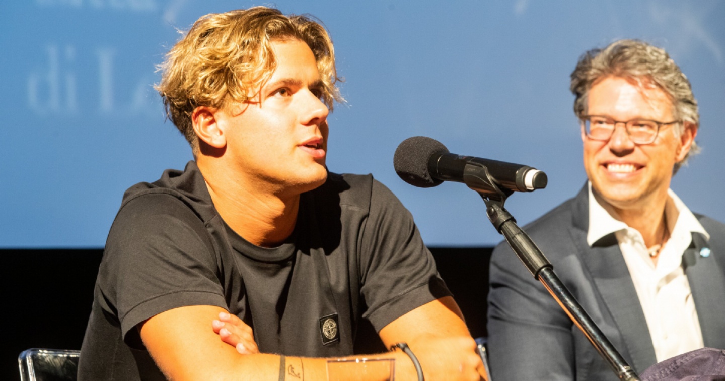 Assai interessante, come accennato, il successivo incontro col nuotatore Noè Ponti, che – ricordiamo – in particolare si è guadagnato la medaglia di bronzo ai Giochi di Tokyo nel 2022 (100 metri delfino) e quella d’argento al Campionato mondiale in vasca corta (25 m) di Abu Dhabi nel 2021, nella 200 delfino. Con la sua innata simpatia e spontaneità, rispondendo ad alcune domande postegli dal sindaco, Noè si è aperto ai ragazzi, raccontando la sua vita, gli sforzi compiuti per raggiungere importanti obiettivi e di come li ha affrontati, cercando sempre di essere sé stesso. Ponti ha quindi sottolineato l’importanza di valori come lo spirito di sacrificio, il sapersi impegnare a fondo e con costanza in ciò che si fa, ma anche del saper, sempre e comunque, sognare e porsi grandi obiettivi. "Fate tutto sempre al meglio. Non per compiacere gli altri, ma per voi stessi", ha concluso rivolgendosi ai suoi quasi coetanei.