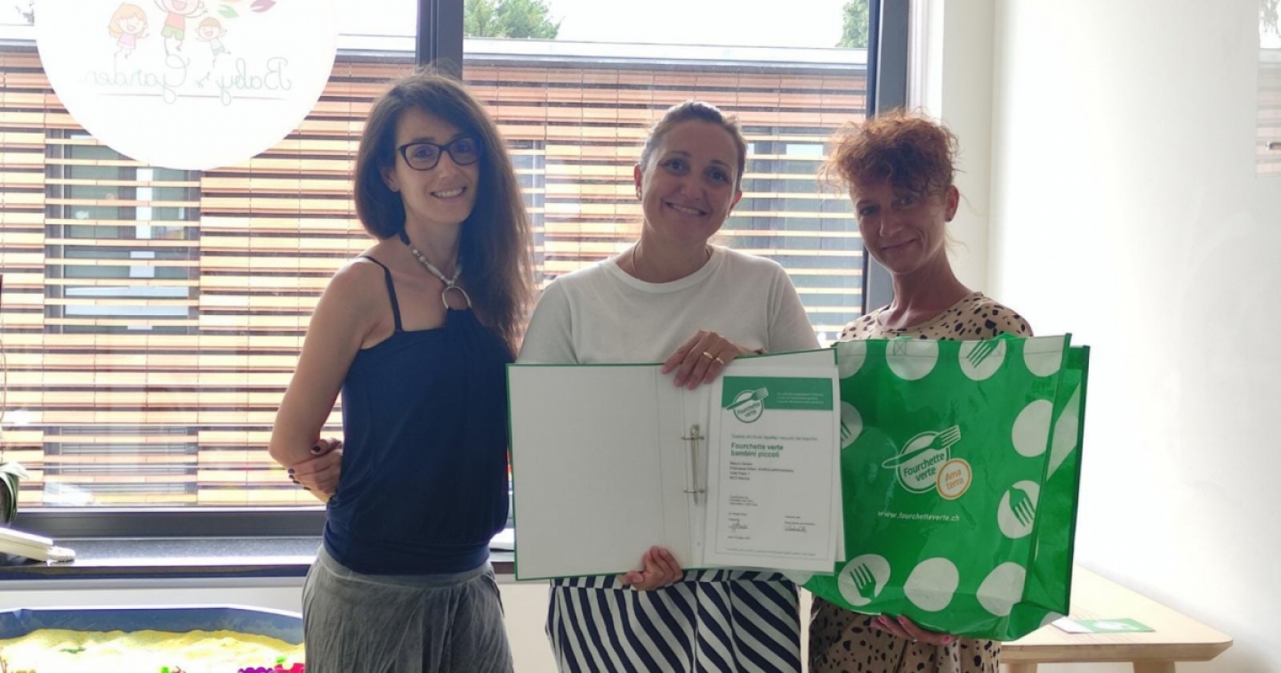 Fourchette verte Ticino – associazione che promuove l’alimentazione sana – ha assegnato l’omonimo marchio all’asilo nido Baby’s Garden di Ascona. "Il pranzo al nido rappresenta un atto di cura verso i bambini. È un momento importante, fortemente educativo, che richiede di essere studiato e progettato in tutti i suoi aspetti. Dal punto di vista nutrizionale ci teniamo a offrire ai bambini dei pasti e degli spuntini equilibrati e variati. Per questo motivo abbiamo deciso di metterci in gioco e di richiedere il marchio Fourchette verte, che abbiamo ottenuto", ha spiegato Francesca Ortani, direttrice amministrativa del nido, a proposito del riconoscimento sinonimo di qualità per i ristoratori che propongono pasti equilibrati, nel rispetto dei criteri della piramide alimentare svizzera.