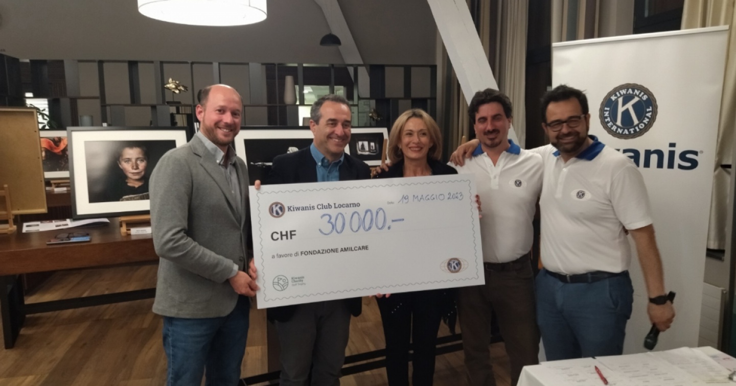 Alla consegna dello “chèque” erano presenti i due organizzatori Massimiliano Carreri e Davide Nuzzi, la presidente del Kiwanis club Locarno Daniela Nugnes e i membri della Fondazione Amilcare Bixio Caprara e Gian Paolo Conelli.