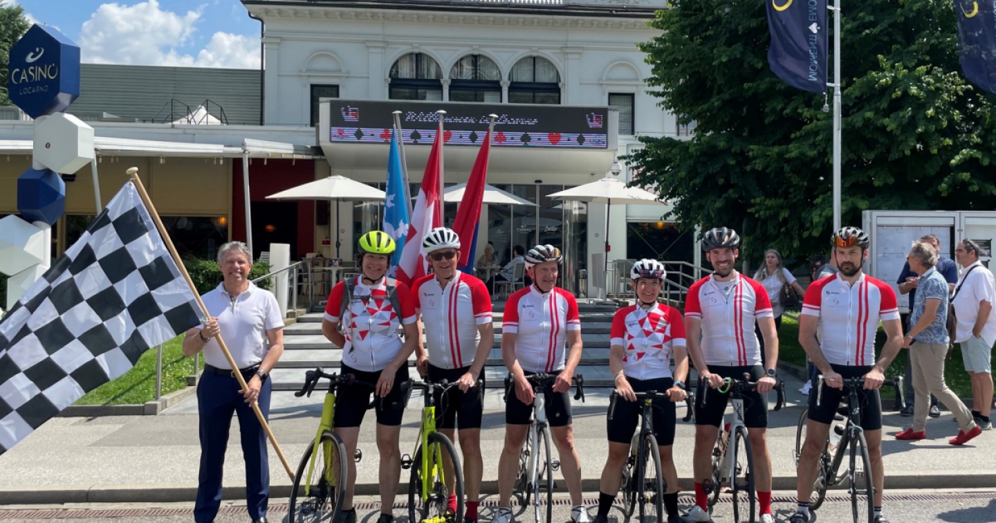 Jürg Altorfer, presidente del Consiglio di Amministrazione della Stadtcasino Baden Ag, aveva promesso al Sindaco di Locarno, Alain Scherrer, che nella primavera del 2022 si sarebbe recato a Locarno in bicicletta in caso di acquisto della Casinò Locarno Sa. E non si è limitato a prometterlo al sindaco, ma ne ha anche accennato agli azionisti in occasione dell'Assemblea generale del giugno 2022. Un presidente, una parola: venerdì 9 giugno 2023, alle 9, si è ritrovato con altri cinque compagni d'armi estremamente motivati ed entusiasti davanti al Grand Casino Baden. L'obiettivo era chiaro: il tour avrebbe dovuto rafforzare ulteriormente il legame tra Baden e Locarno. La lunga trasferta è stata diviso in due tappe: il primo giorno i coraggiosi ciclisti hanno puntato su Andermatt, dove sono arrivati nel tardo pomeriggio con una sana stanchezza nelle gambe. Dopo una notte di riposo, il viaggio è proseguito attraverso il Passo del San Gottardo, scendendo per la Tremola e la Leventina fino alle rive del Lago Maggiore.