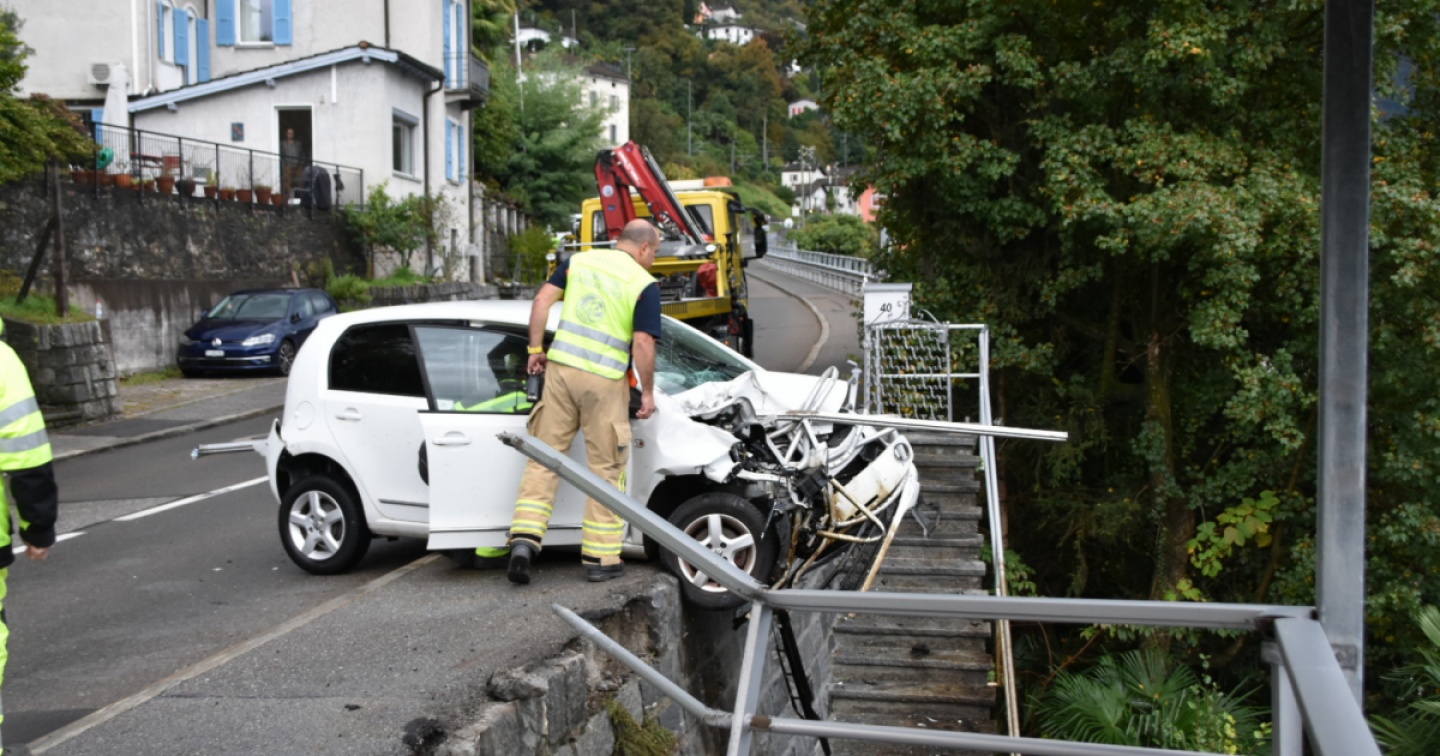 Stando alle prime informazioni raccolte sul posto la sventurata, che circolava in direzione di Magadino a bordo di una VW con targhe ticinesi, per motivi da stabilire, ha perso il controllo della propria vettura. L'auto ha sbandato spostandosi sulla sinistra, finendo la sua corsa in bilico su un muro, dopo aver diverto una ringhiera (che sembrerebbe aver trapassato la macchina da parte a parte).