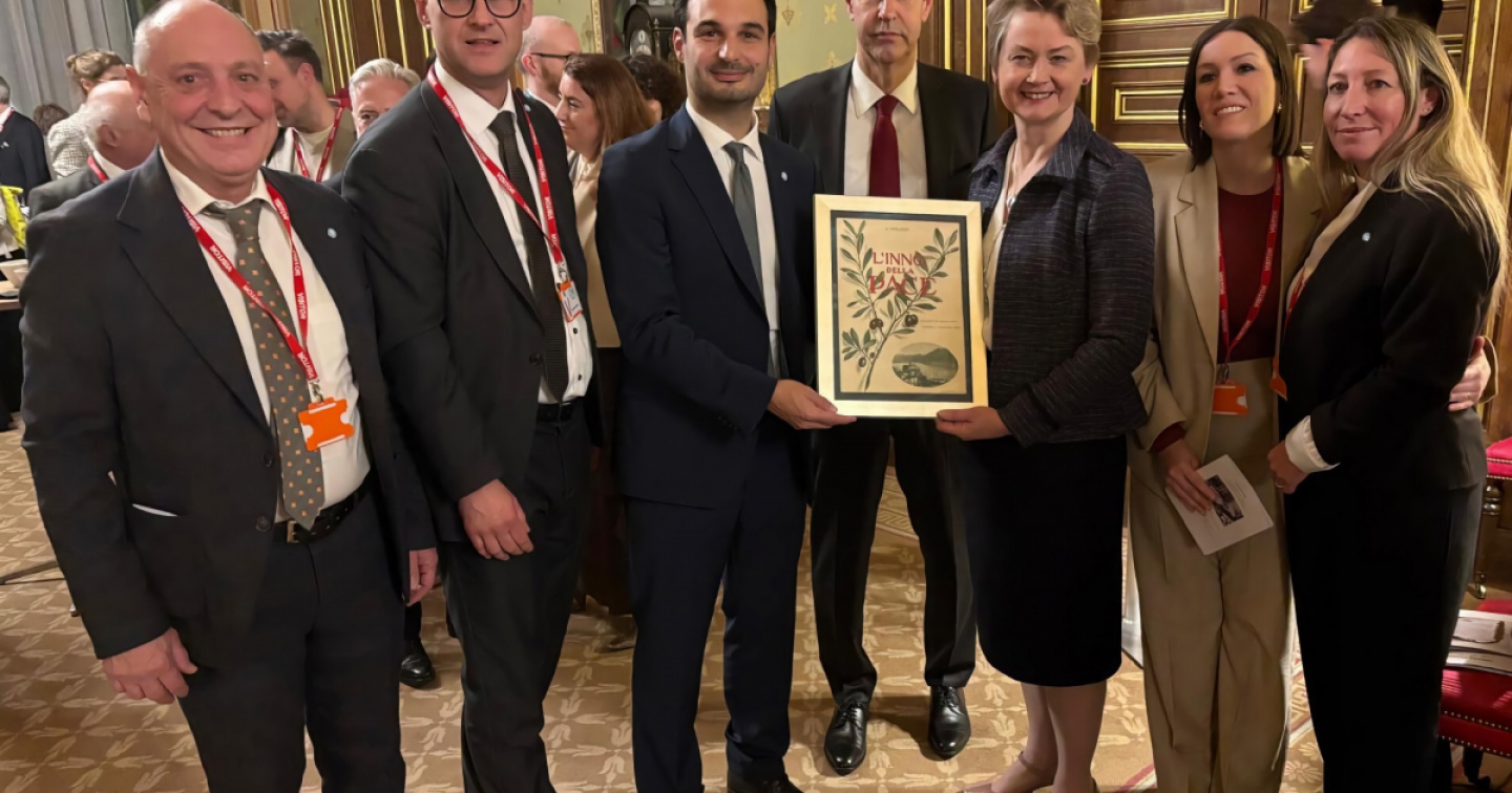 Durante il ricevimento istituzionale, il sindaco di Locarno Nicola Pini ha ribadito il significato contemporaneo dell’Esprit de Locarno come approccio politico e civile: un invito permanente a scegliere la via del dialogo, del diritto, dell’arbitrato e della cooperazione invece che della pulsione alla forza. Pini ha ricordato la figura di Giovan Battista Rusca, allora sindaco di Locarno e protagonista storico dell’organizzazione della Conferenza del 1925, annunciando la donazione all’Fcdo di un suo busto in bronzo destinato alla “Locarno Suite”: un gesto simbolico per consolidare una memoria condivisa e riaffermare il ruolo che anche una città di dimensioni contenute può avere nel promuovere valori universali. Pini ha inoltre offerto all’Fcdo una copia originale dell’Inno della pace composto nel 1925 in occasione degli Accordi di Locarno.