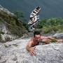 L'area del Sasso Margone, a Campione d'Italia, è stata nei giorni scorsi meta di arrampicate estreme e salti nel vuoto. Protagonisti alcuni sportivi che, come documentano le immagini di Ti-Press/Francesca Agosta, hanno dapprima percorso un tracciato raggiungibile solo in barca per poi cimentarsi in spettacolari tuffi nel vuoto.