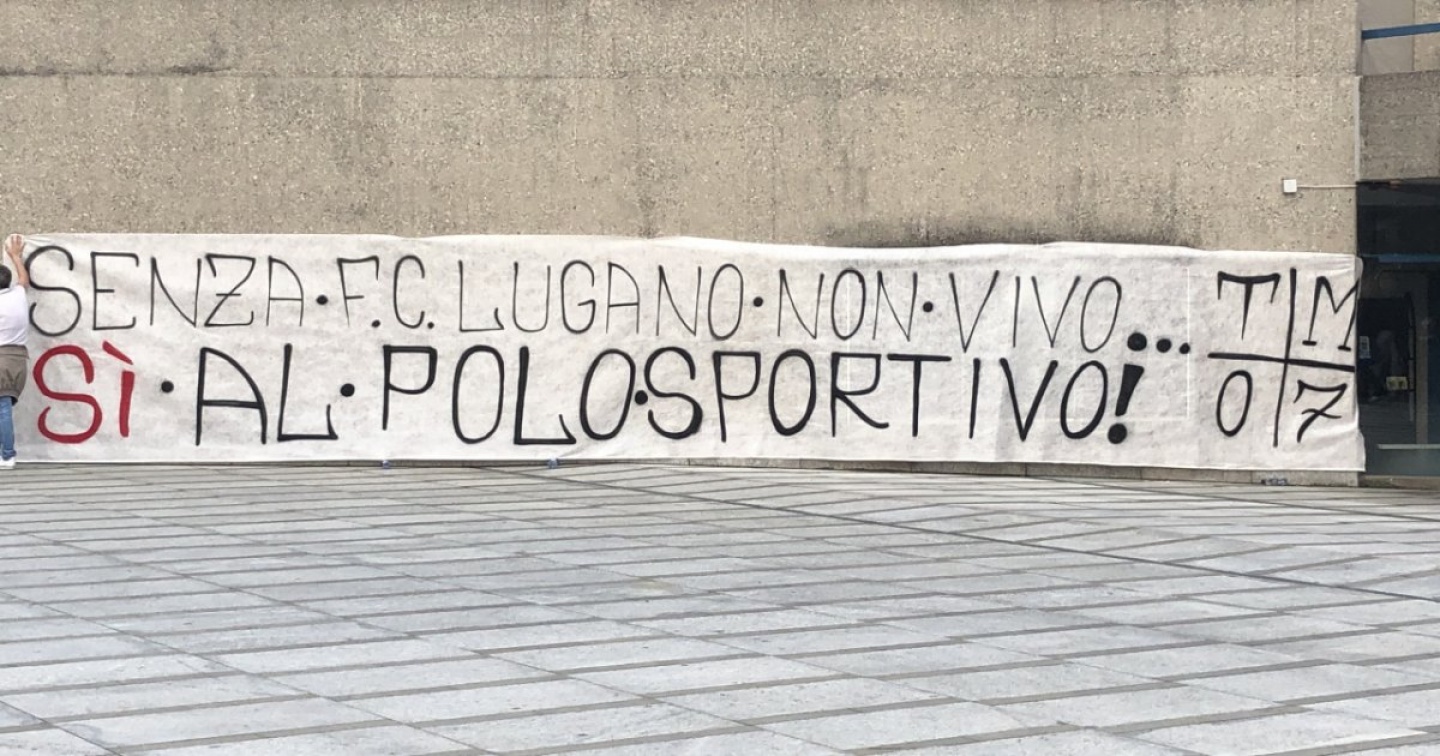 Non è mancata la presenza dei tifosi dell'Fc Lugano stasera al Palazzo dei congressi di Lugano. Un gruppo di loro ha posato uno striscione a sostegno del messaggio municipale più importante della seduta, quello relativo alla progettazione del Polo sportivo e degli eventi.