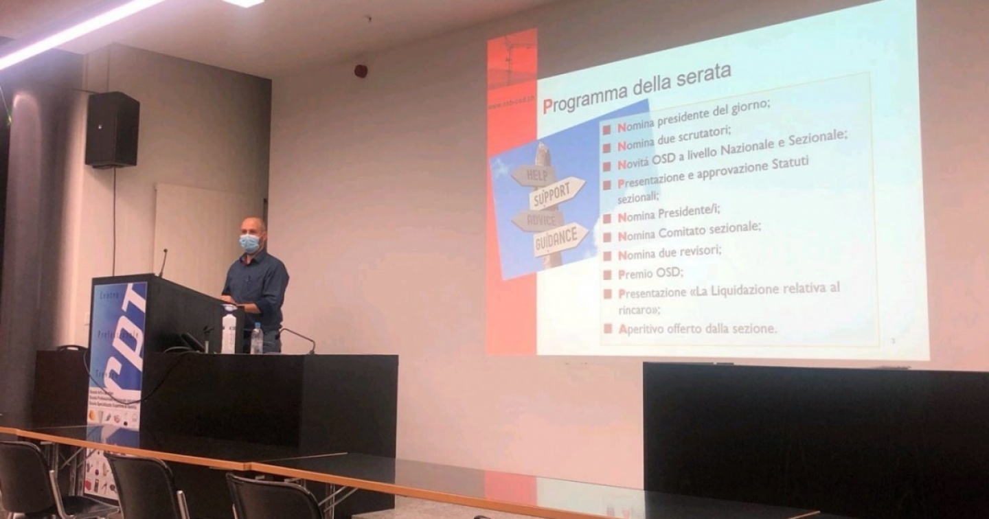 Nell’anno del 30° di OSD Svizzera, l'Organizzazione svizzera direzione lavori), l’assemblea ordinaria dell’Osd Sezione Svizzera italiana si è svolta a Trevano: durante l’assemblea sono state presentate le attività associative del 2020 e in particolare il lavoro fatto durante questo difficile periodo. Inoltre sono stati approvati gli statuti sezionali e rinnovato il comitato, con la novità della nomina di due copresidenti invece che un presidente e il suo vice. Gli eletti sono Aleksej Negri Senzani e Davide Zaccaria. Durante l’assemblea è stato pure nominato il nuovo Comitato per gli anni 2021-2022, con Silke Schnidrig, Sabina Binda, Valladolid Manuela, Vito Petrillo, Massimo Perosa, Michel Brenna, Ramiro Farfan
