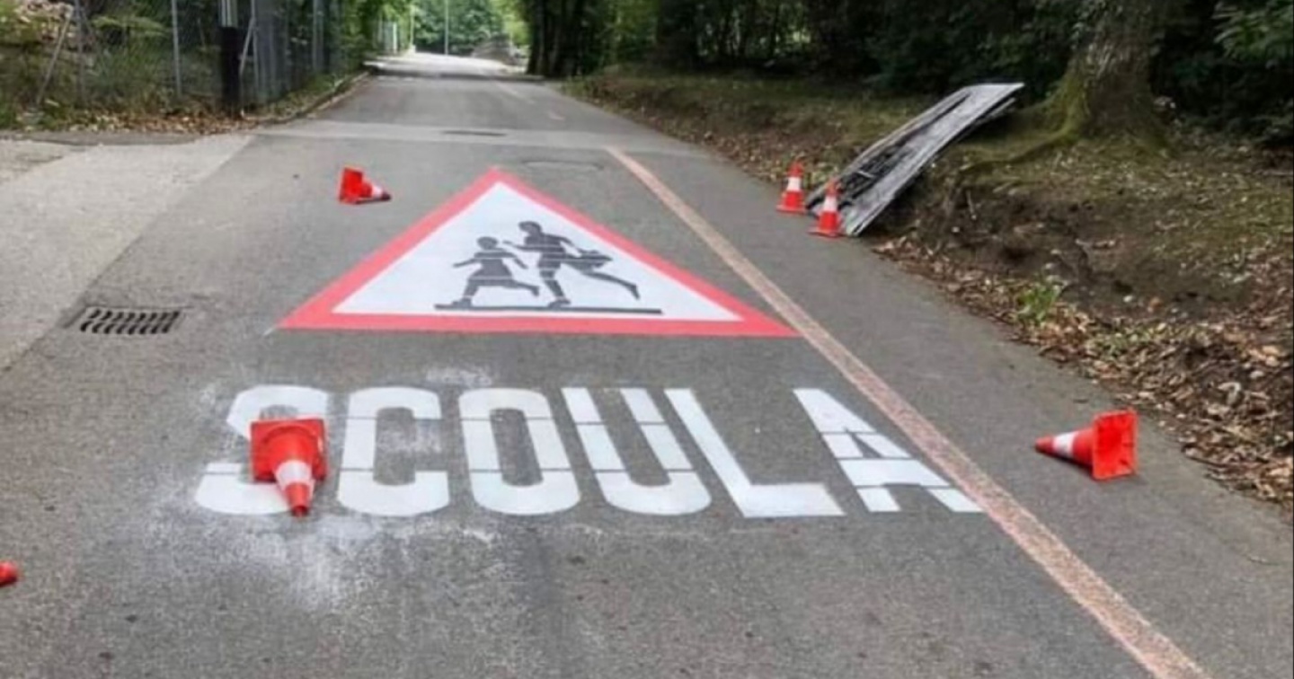 A leggerlo transitando con l’auto si sarebbe potuto ben pensare a un anticipato Pesce d’aprile. Ma poi, riflettendoci, siamo solo a settembre. Forse un miraggio? Un operaio buontempone pronto a dare il suo saluto agli allievi in procinto di recarsi sui banchi dopo le lunghe vacanze estive? Forse ancora una ditta proveniente dalla Svizzera interna o romanda? Pare nulla di tutto questo. Giusto un errore, come confermatoci dal vicesindaco e capo del Dicastero del traffico a Origlio, Carlo Bosia, a cui ‘laRegione’ ha chiesto informazioni: «Abbiamo dovuto rifare la segnaletica. È stato qualche giorno prima dell’inizio dell’anno scolastico. La scritta però è rimasta lo spazio di un mattino, in quanto i responsabili se ne sono accorti e vi hanno posto rimedio».