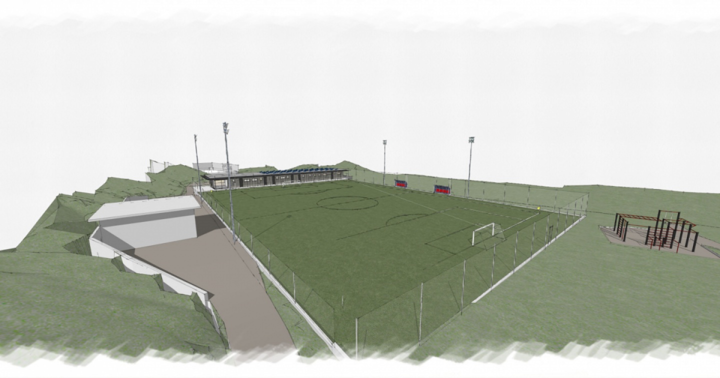 Il rendering del campo da calcio